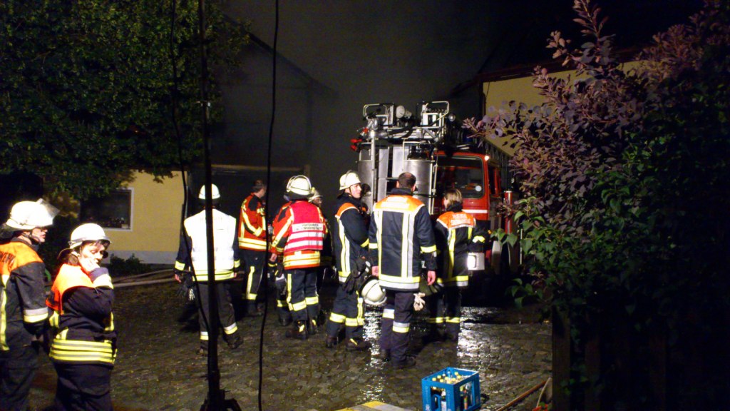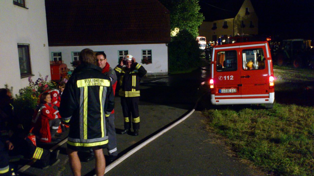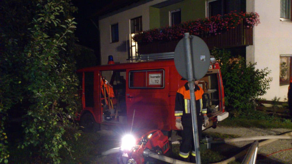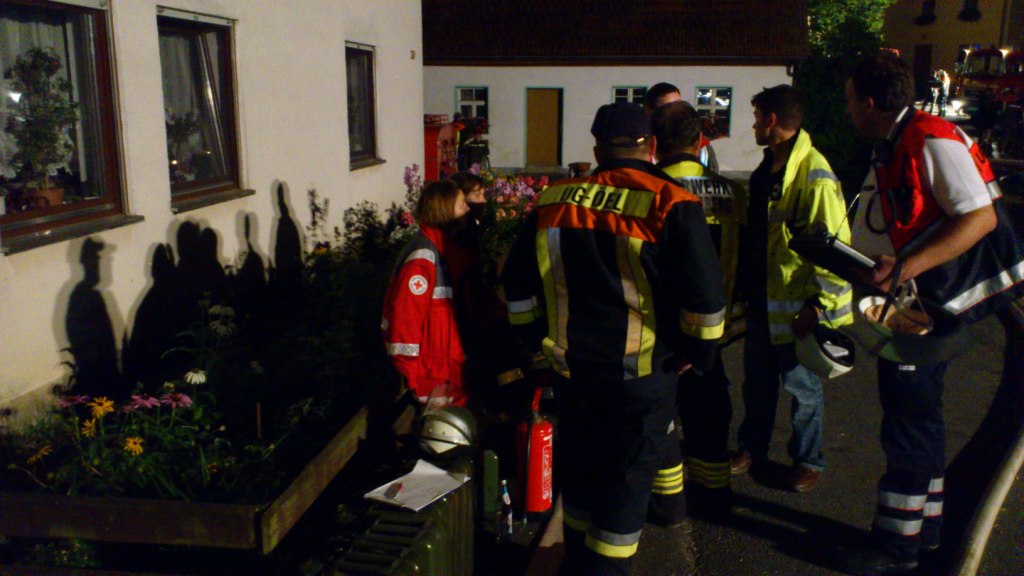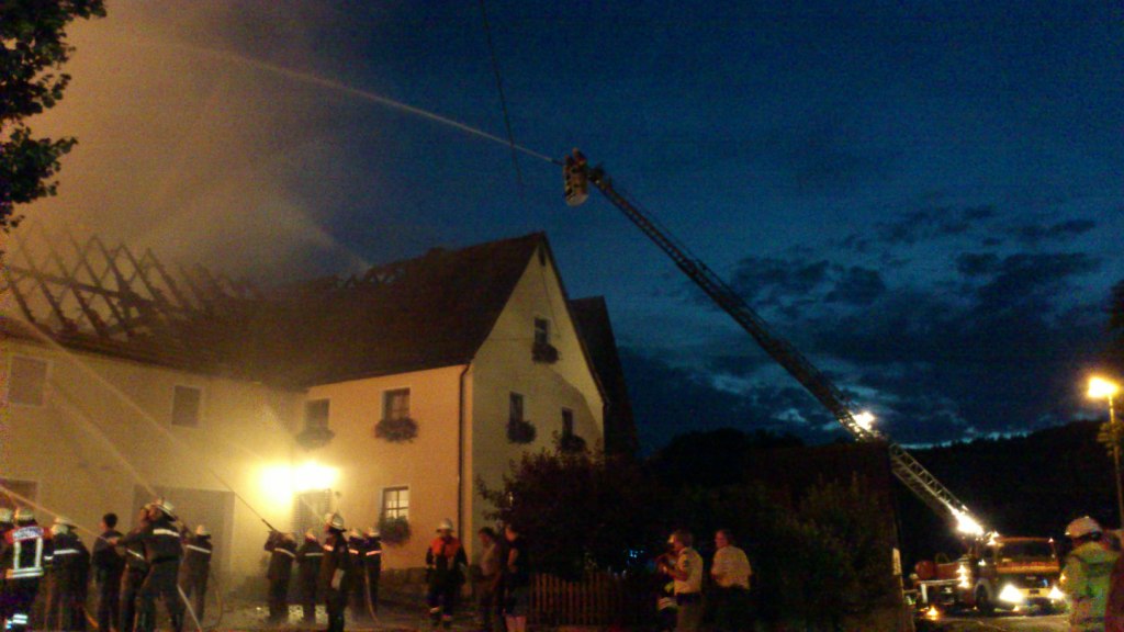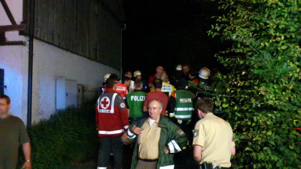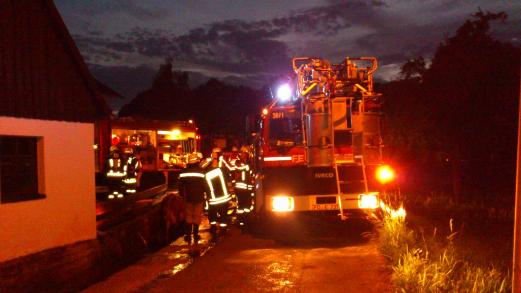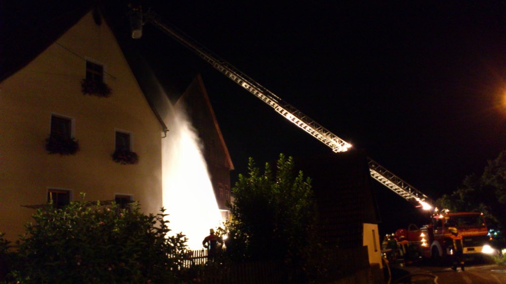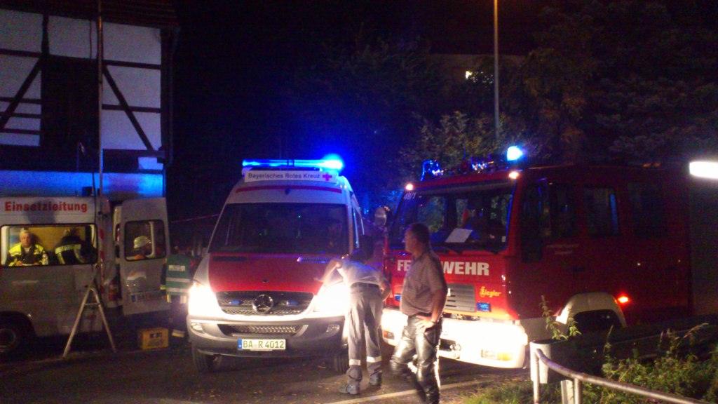 Die Drehleiter aus Ebermannstadt fährt in Stellung.