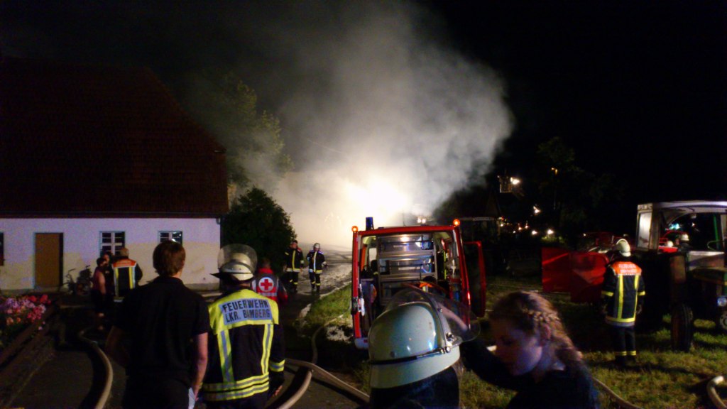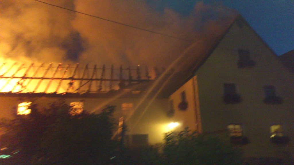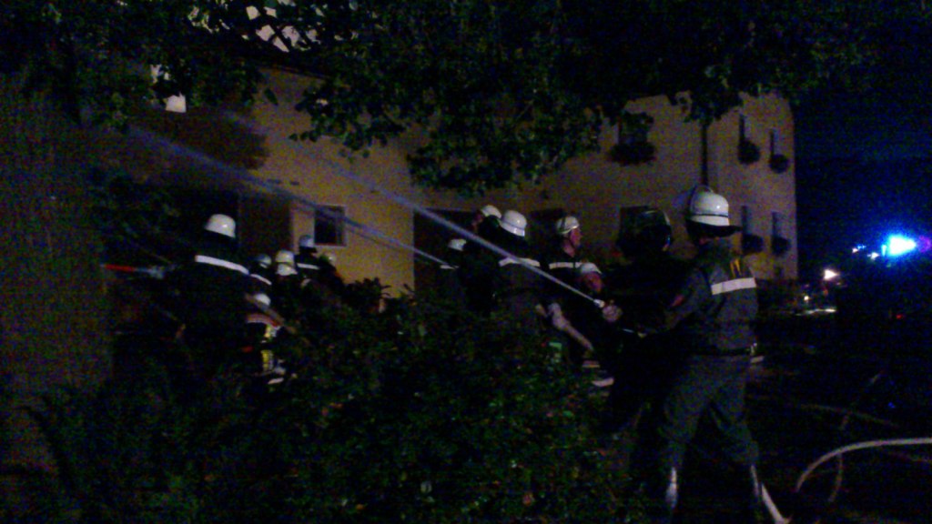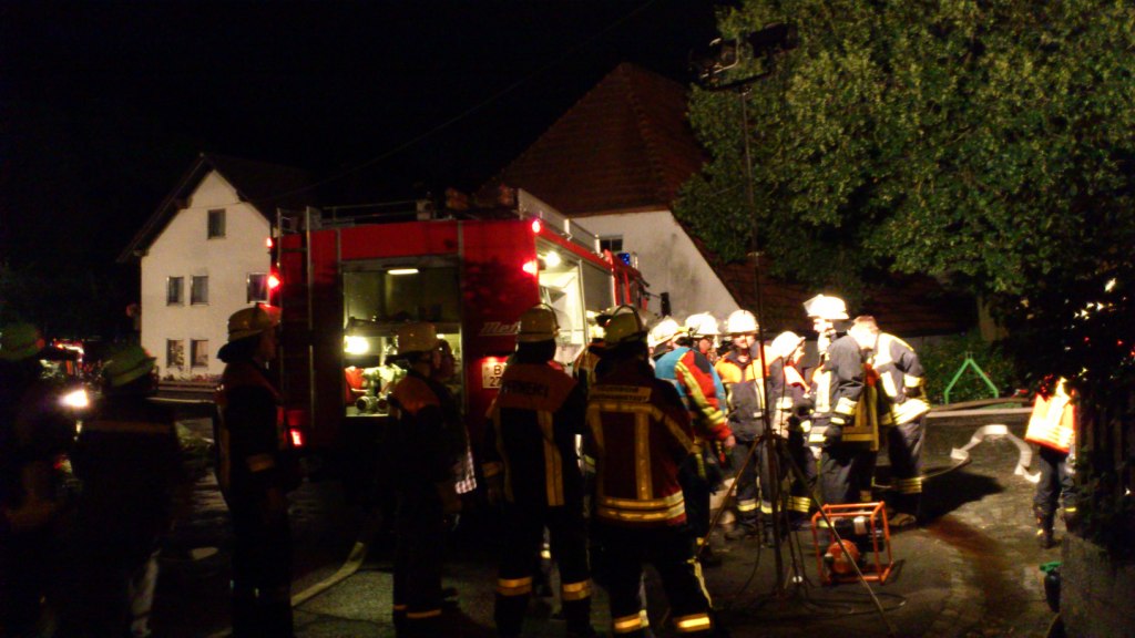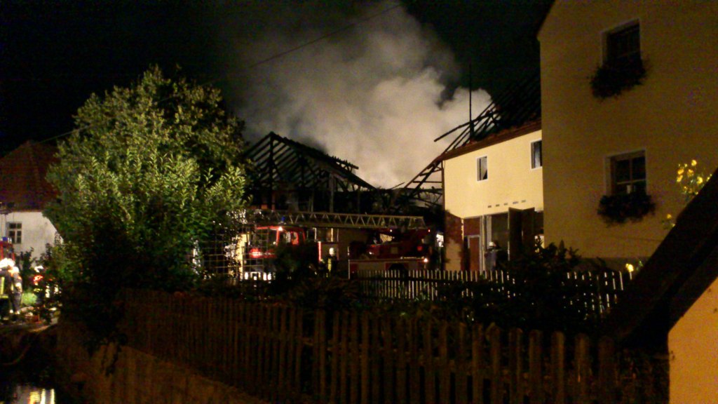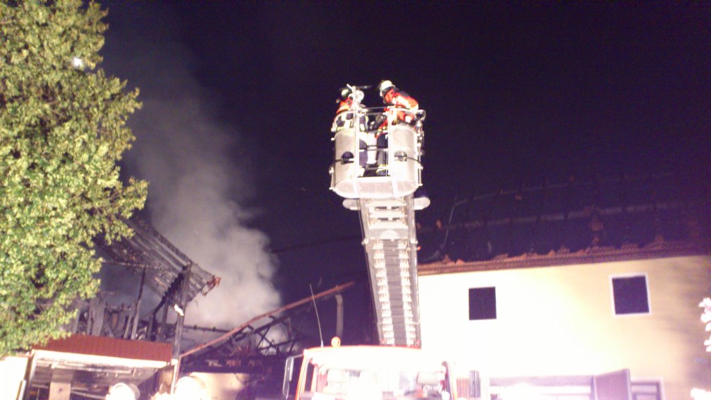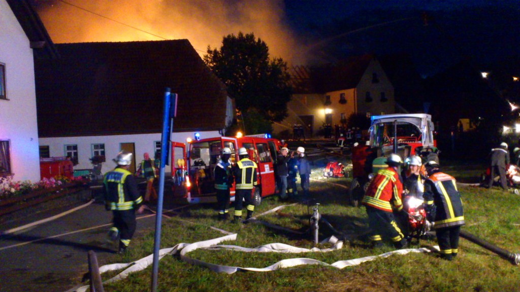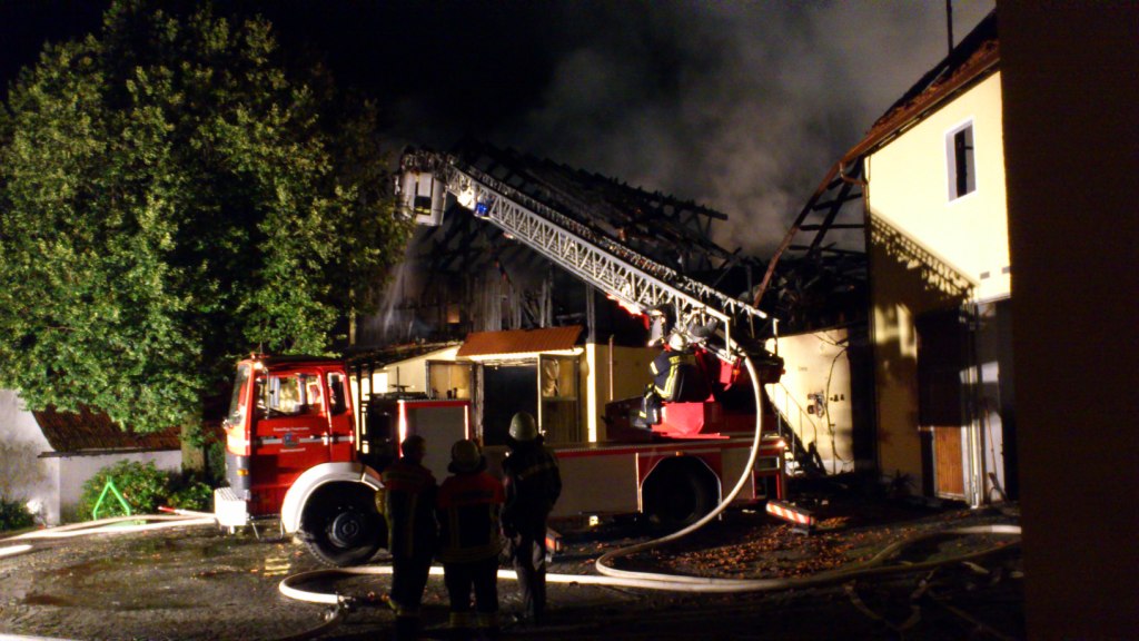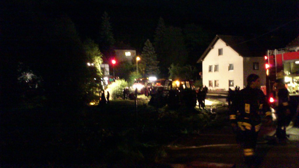 Die Drehleiter aus Ebermannstadt fährt in Stellung.