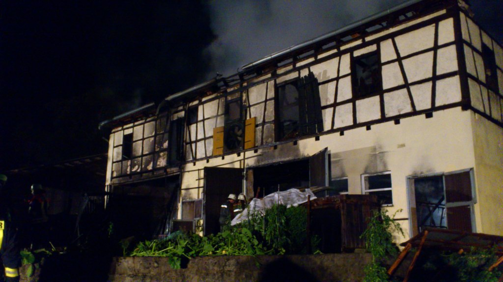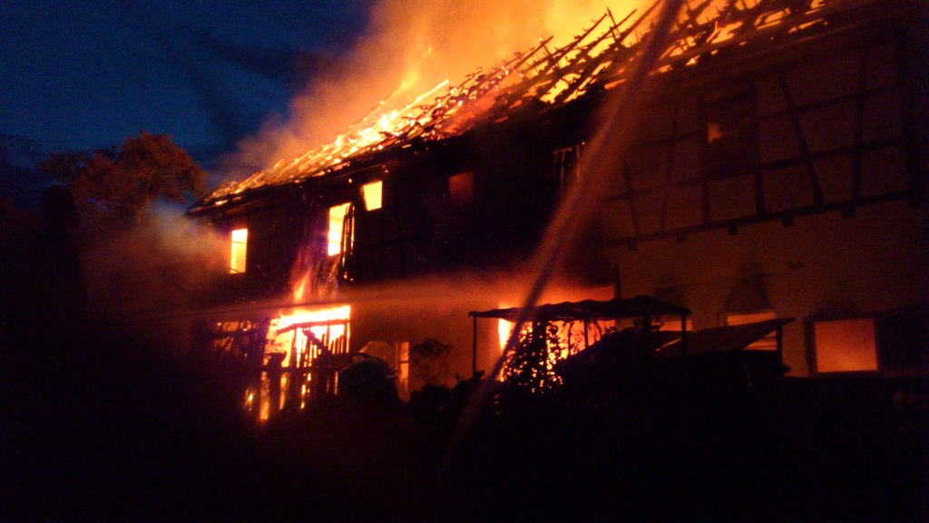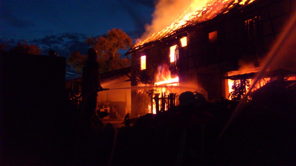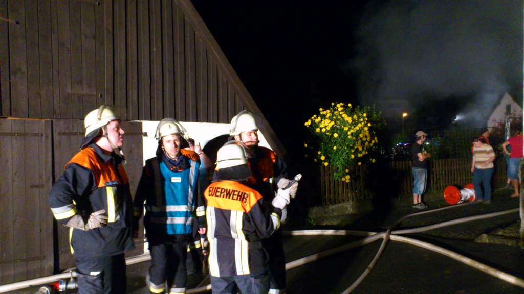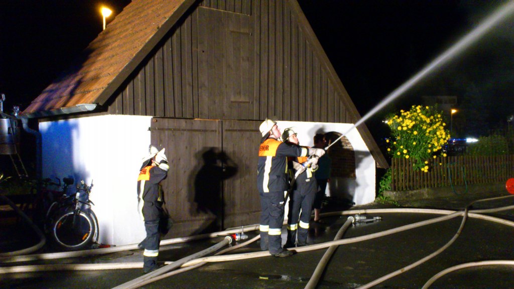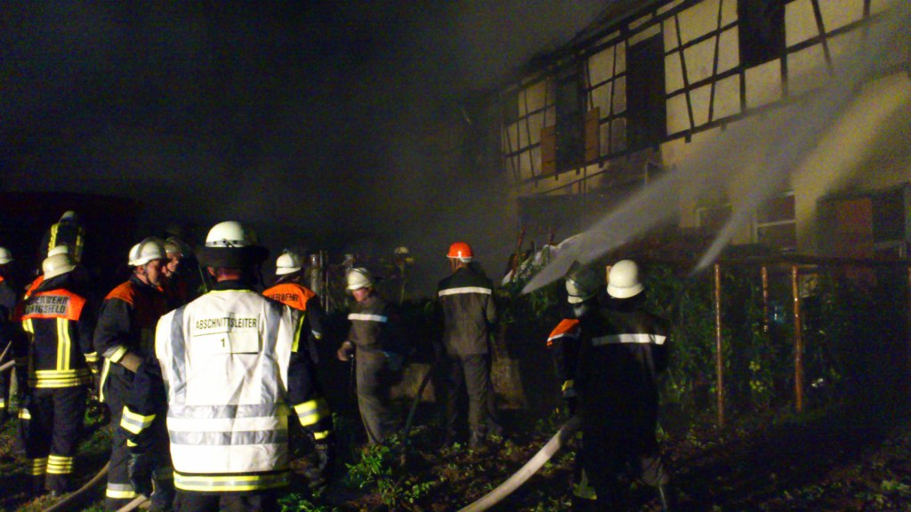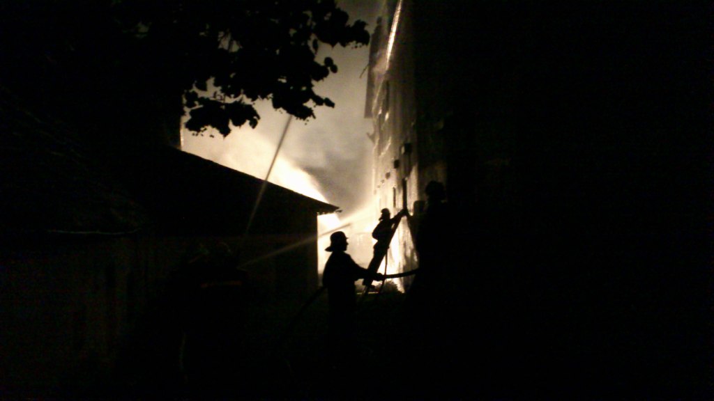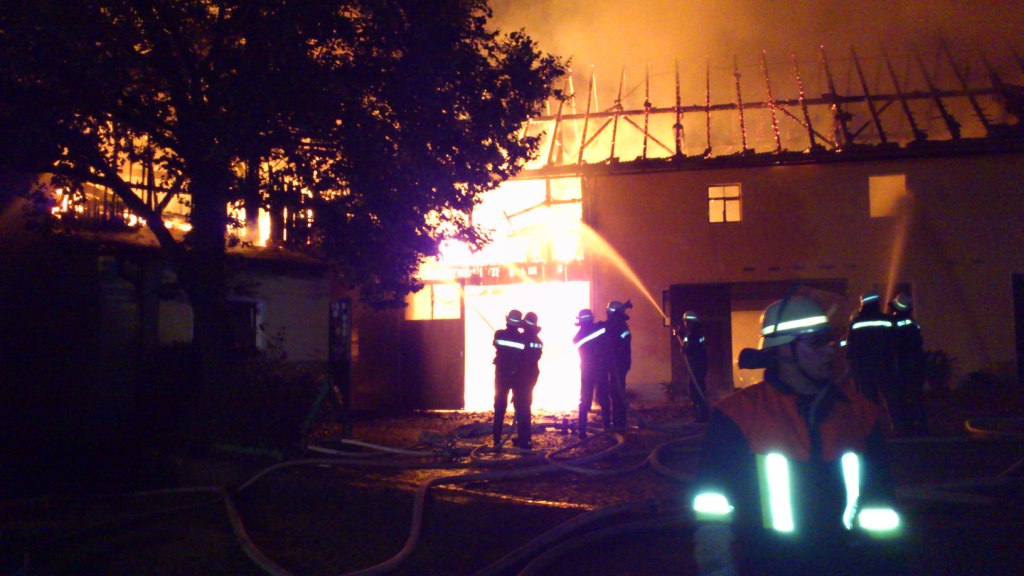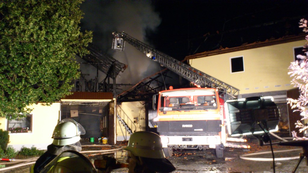 Die Drehleiter aus Ebermannstadt fährt in Stellung.