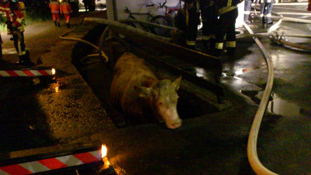 Das Kalb irrte lange an der Einsatzstelle umher, bevor es weggebracht werden konnte.