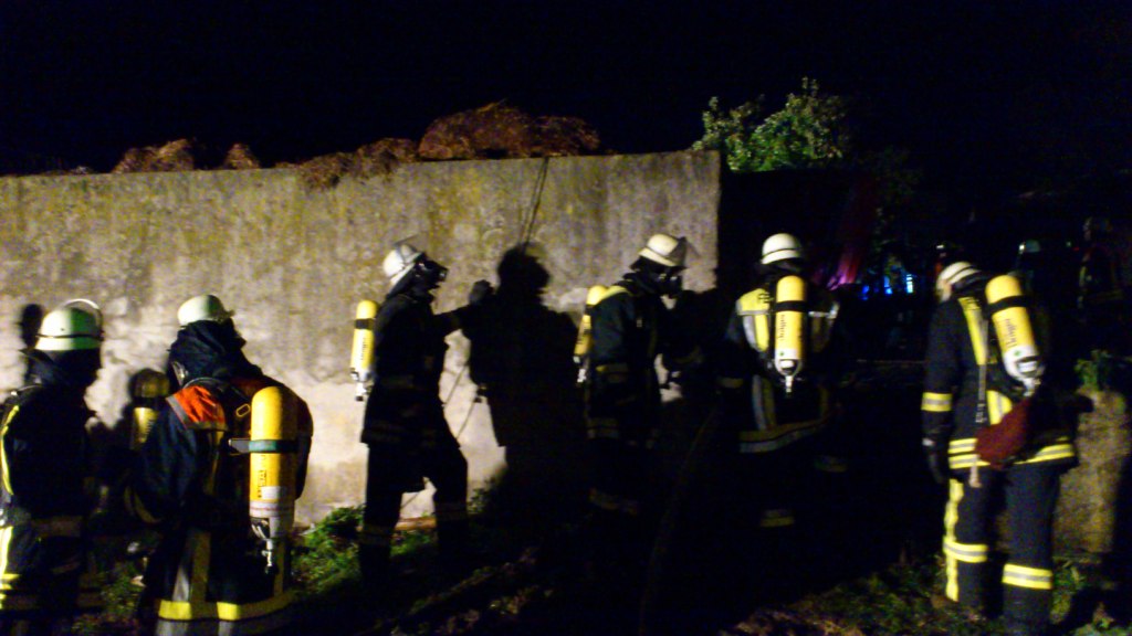Atemschutzgeräteträger bereiten sich auf den Innenangriff vor.