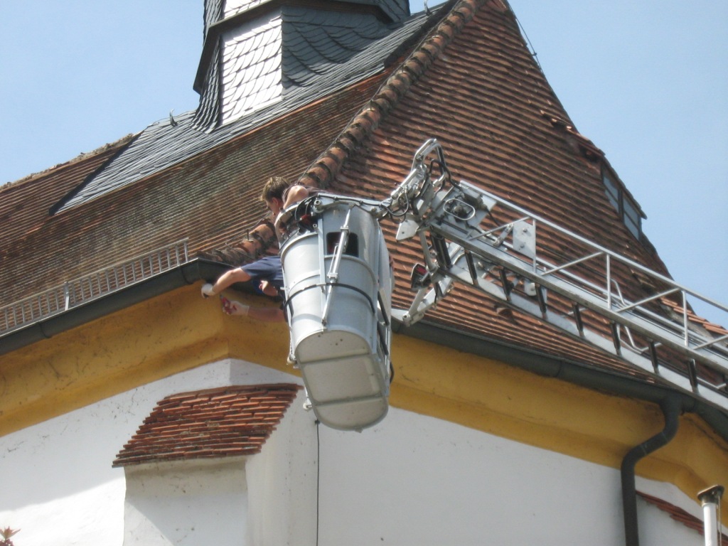 Ebermannstadt den Mauersegler befreien. In einem zuvor bereitgestellten Käfig