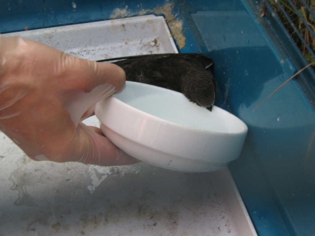 wurde der Vogel mit Wasser versorgt und untersucht. Aufgrund einer Verletzung