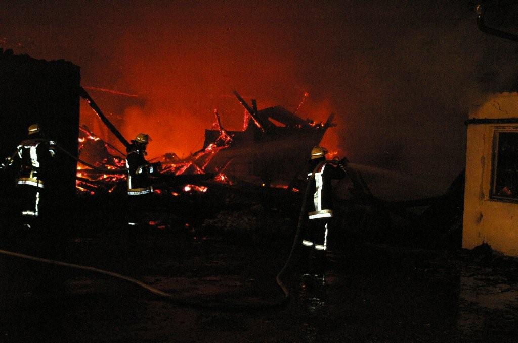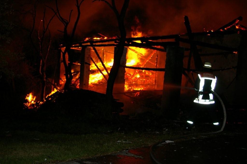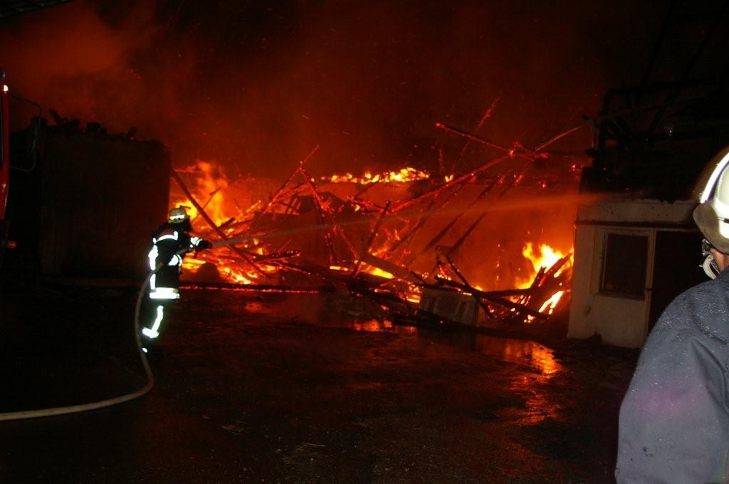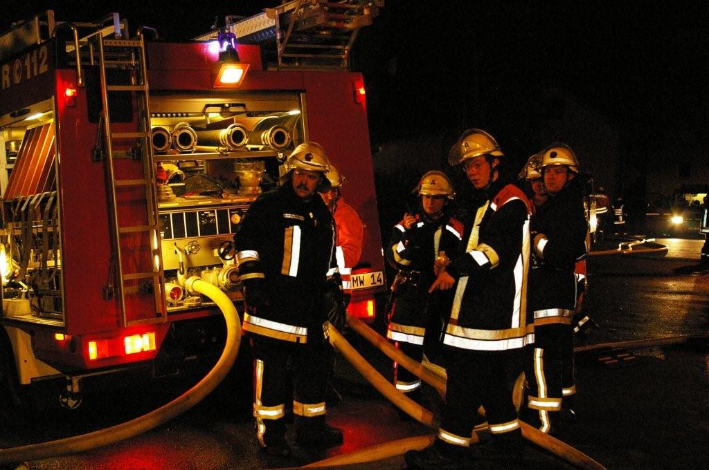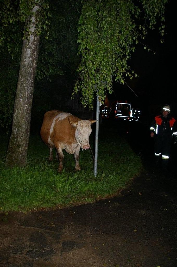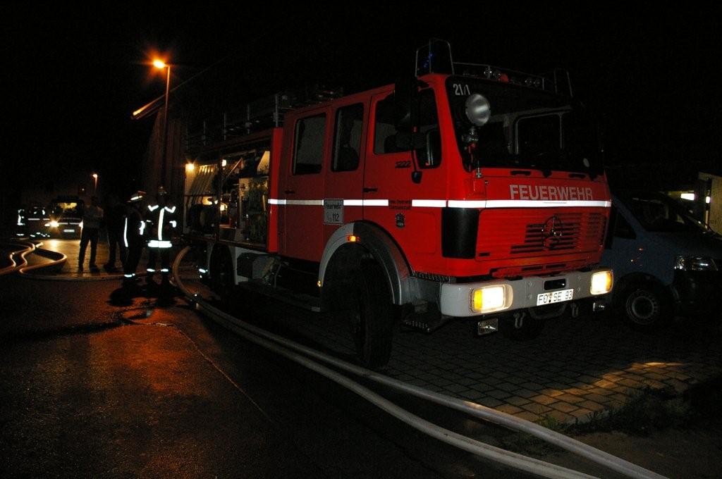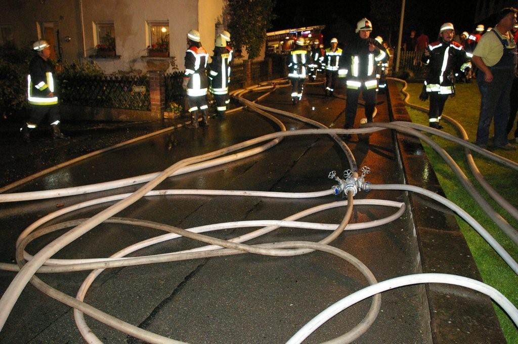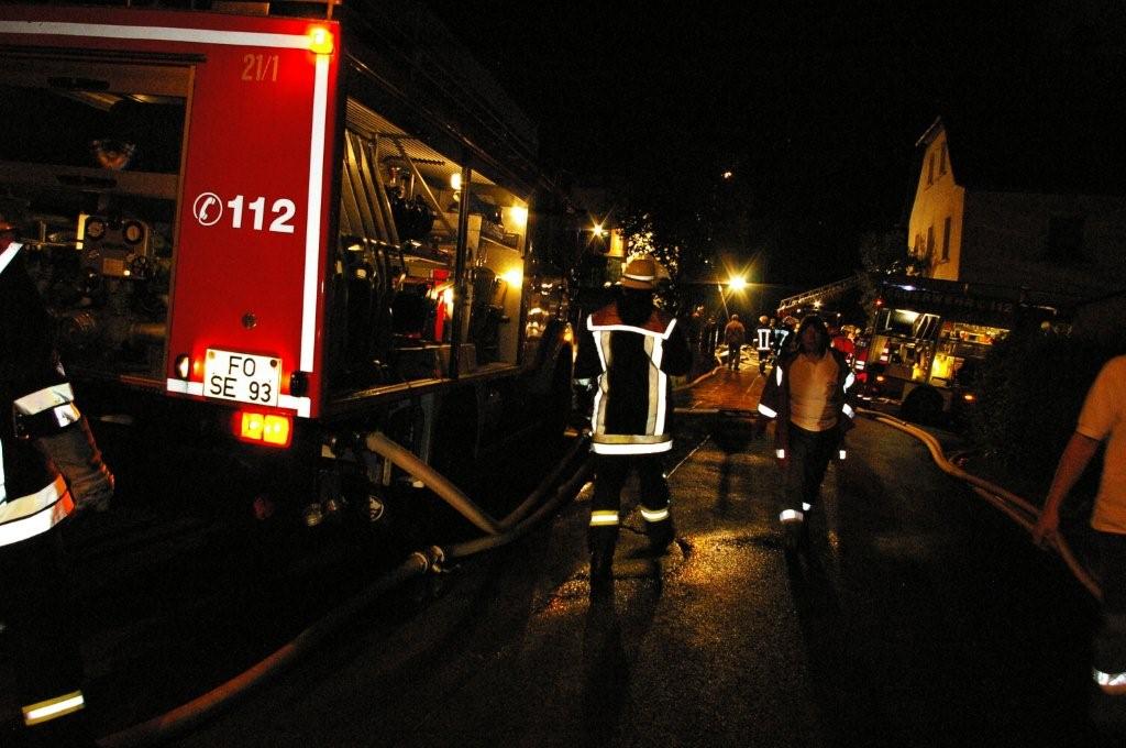 Dauer: 4 Std Einsatzdokumentation: Durch Sirene und Funkwecker wurde die FF Heiligenstadt alarmiert. In Störnhof (Gemeinde Wiesenttal, Lkr. Forchheim) brennt eine Scheune. Schon bei der Anfahrt war der Feuerschein weit sichtbar - das bzw. die Gebäude befanden sich bereits im Vollbrand. Die Löschwasserversorgung war bereits aufgebaut und verschiedene Wehren im Einsatz. Wasser wurde aus dem Löschwasserbehälter in Störnhof und über eine 1,2 km lange Schlauchleitung aus dem Behälter in Oberfellendorf bezogen. Mit den Tanklöschfahrzeugen wurde ein Pendelverkehr zur Wiederbefüllen der Behälter durchgeführt. Zusätzlich beteiligten sich einige Bauern mit ihren Güllefässern am Wassertransport. Bei dem schweren Gewitter schlug ein Blitz kurz nach 1 Uhr in eine 250 m² große Maschinenhalle ein und setzte sie in Brand. Beim Eintreffen der ersten Feuerwehren hatte das Feuer bereits auf die 150 m² große Stallung übergegriffen. Ca 30 Kühe und Kälber wurden aus dem brennenden Gebäude geholt. Durch Hitze und Feuer wurden zwei Wohngebäude ebenfalls in Mitleidenschaft gezogen. Vier Personen wurden verletzt (drei mit Rauchvergiftung und Schock, ein Helfer zog sich leichte Verletzungen bei Einfangen der Kühe zu) und vom Rettungsdienst ins Krankenhaus gebracht. Es entstand ein Sachschaden von rund 150.000 €. Es waren über 200 Feuerwehrleute im Einsatz! Weitere Infos/Bilder: Bericht TV-Oberfranken Bilder FF Ebermannstadt Bilder FF Kirchehrenbach Danke den Kameraden von Ebermannstadt und Kirchehrenbach für die Bilder!
