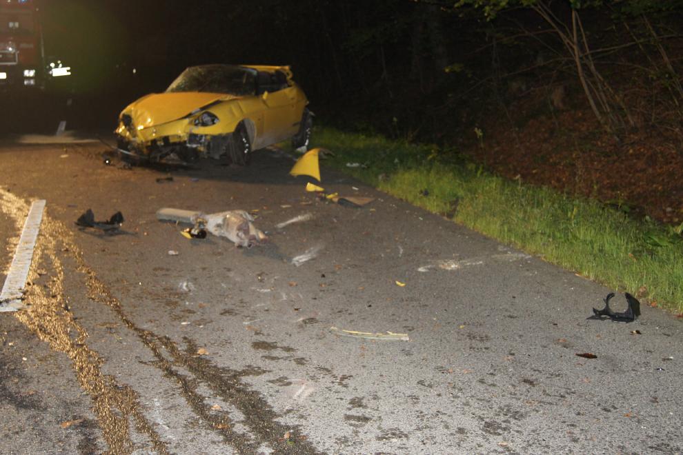 fuhr auf die hochgezogene Böschung. Das Auto überschlug sich mehrmals und kam
