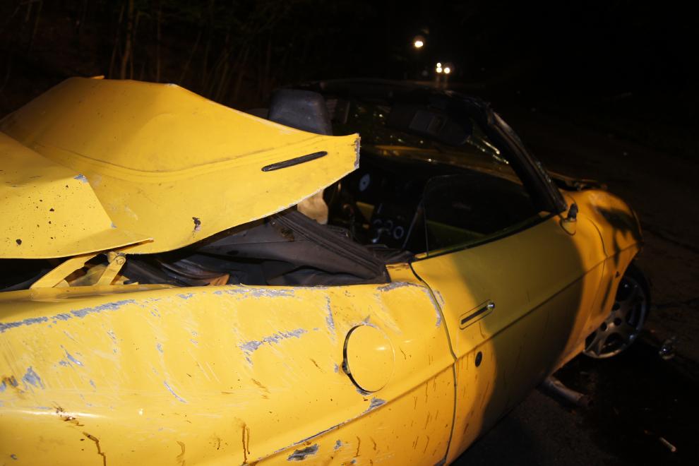 offenen Fahrzeug geschleudert und blieb schwerverletzt auf der Fahrbahn liegen.