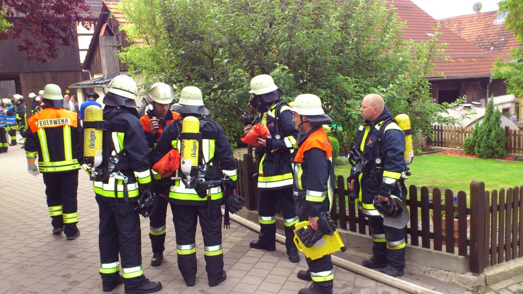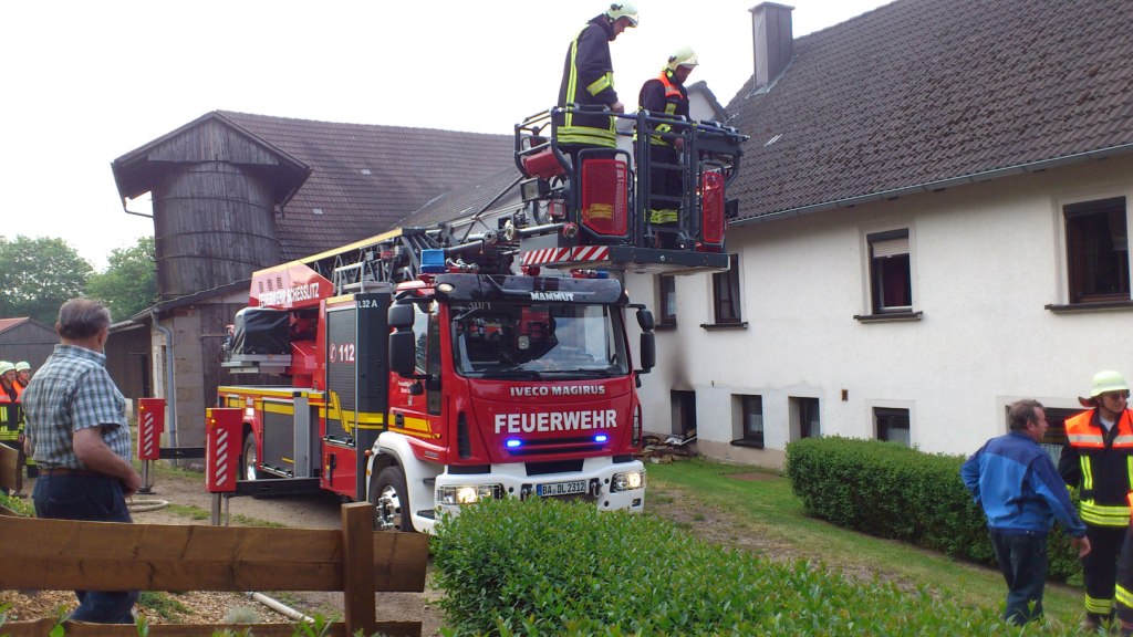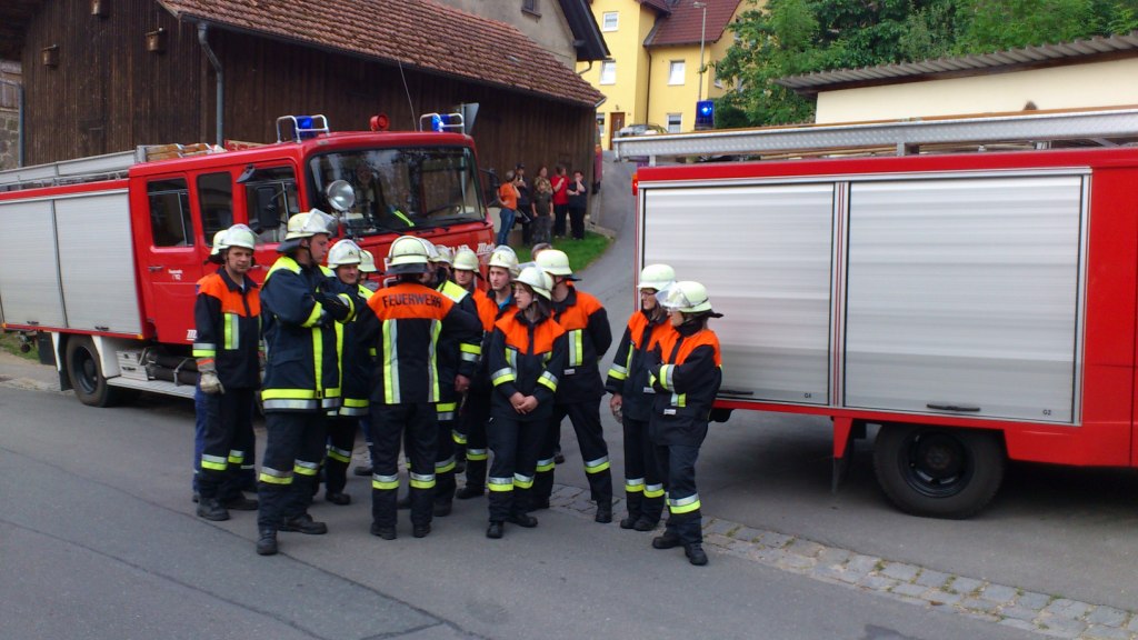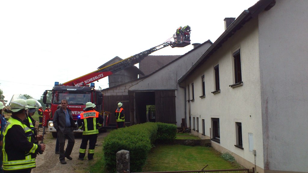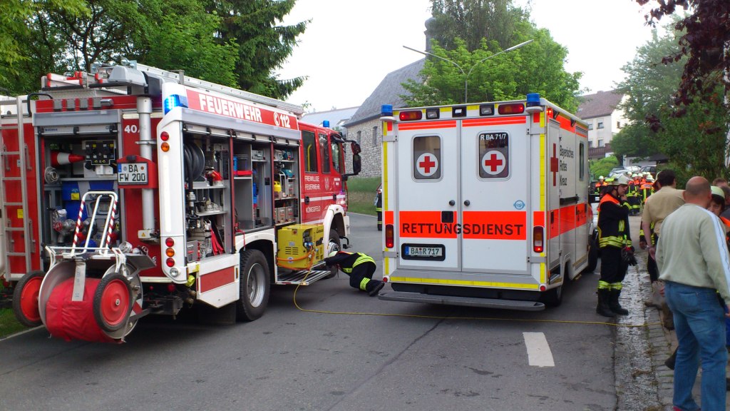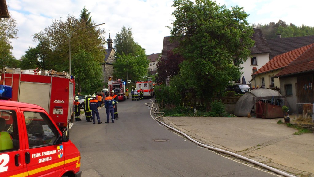 Einsatzdokumentation: Die Sirene und auch die Funkmeldeempfänger alarmierten die FF Heiligenstadt zu einem Kellerbrand nach Laibarös. Bereits bei der Anfahrt konnte man Rauchschwaden über dem Ort erkennen. Die Ortswehr und die FF Königsfeld, Steinfeld und Poxdorf waren bereits vor Ort und bekämpften den Brand. Zeitgleich mit der FF Heiligenstadt traf die FF Scheßlitz ein. Insgesamt beläuft sich die Zahl der Einsatzkräfte auf rund 140. Vor Ort waren ebenfalls die Polizei mit einem KfZ und das BRK mit 2 RTWs und einem NAW. Auch der KBR, der zuständige KBI und 2 KBM waren im Einsatz. Siehe auch http://www.polizei.bayern.de/news/presse/aktuell/index.html/157368