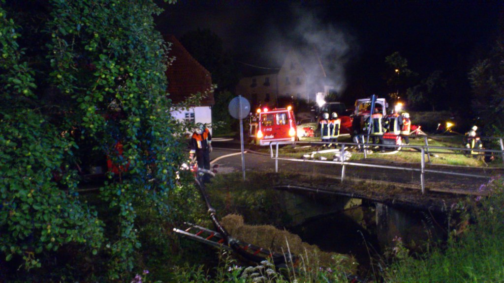 Die Drehleiter aus Ebermannstadt fährt in Stellung.
