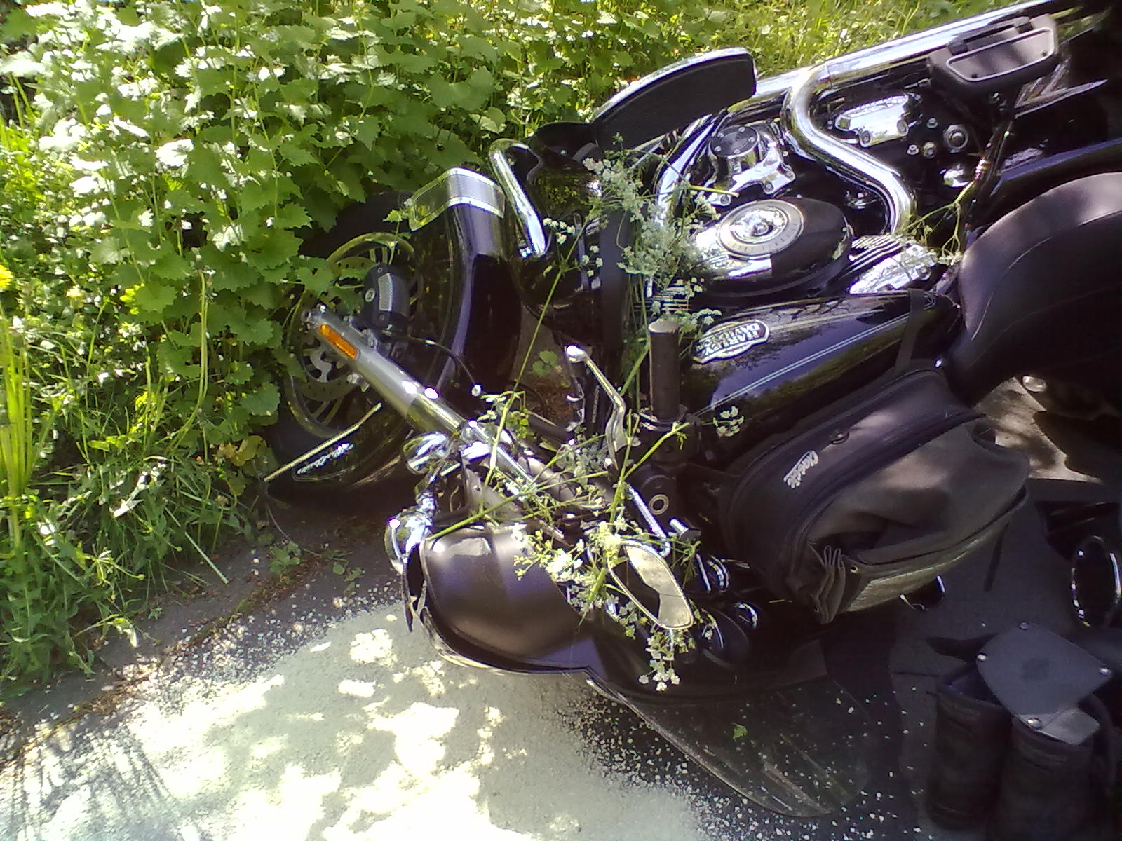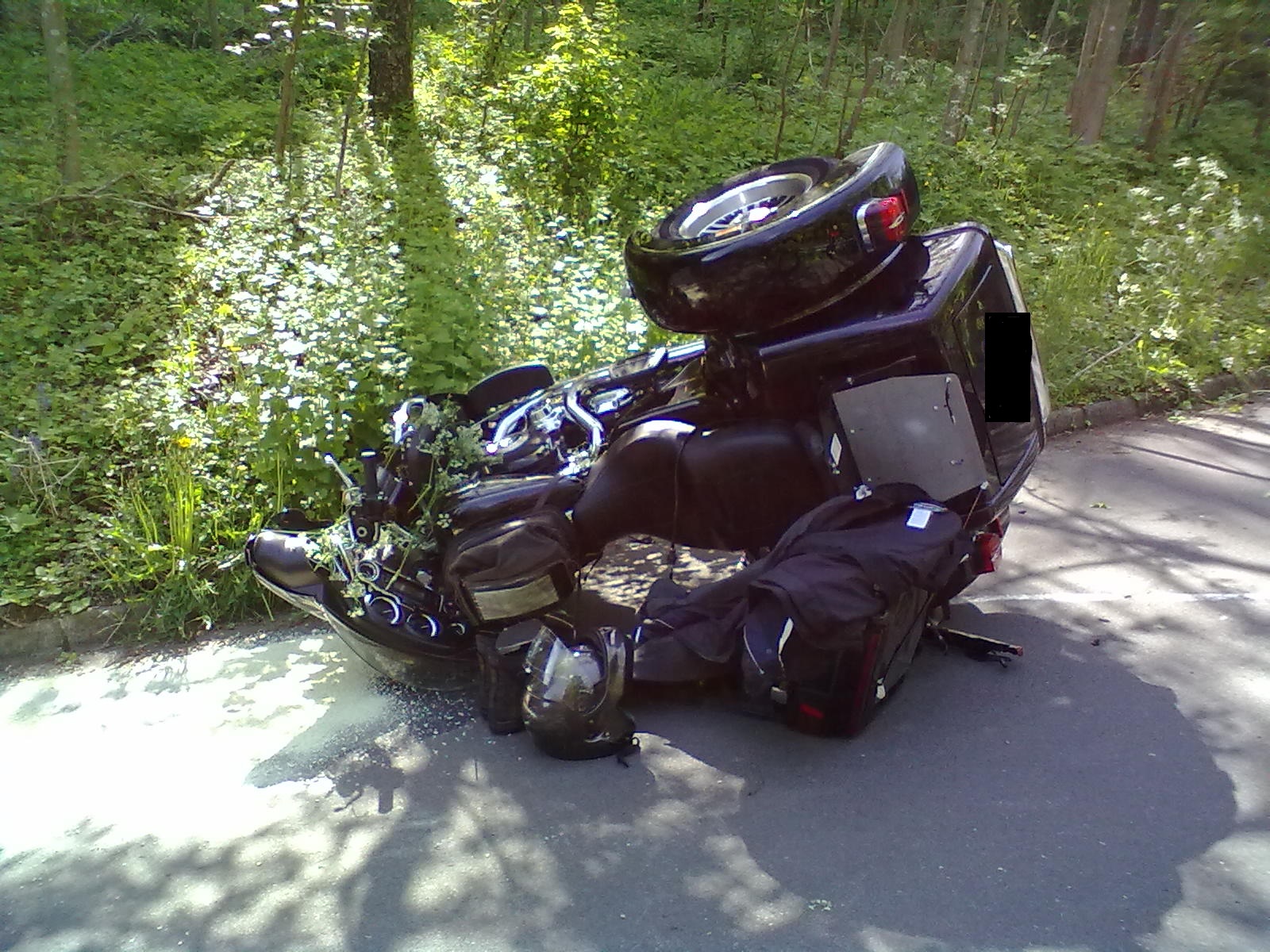 Trike-Fahrer in der steilen Rechtskurve aufgrund eines Fahrfehlers umgekippt und