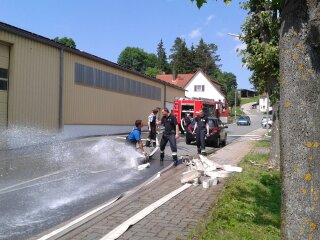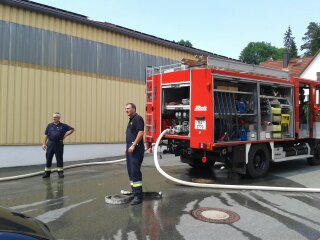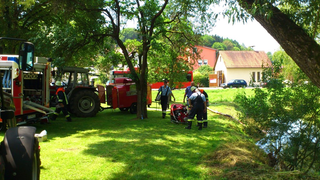 alarmiert. Die FF Burggrub unternahm den ersten Löschangriff - Wasserentnahme