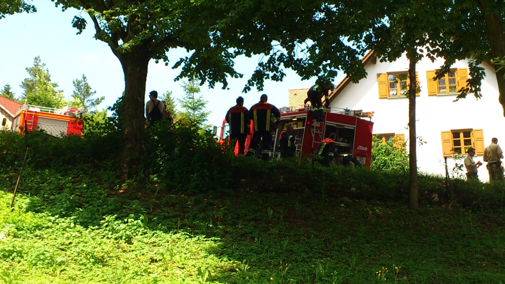 aus dem auf dem Grundstück liegenden Swimming Pools. Aus Ebermannstadt kam die Drehleiter und ein TLF. Das Feuer konnte