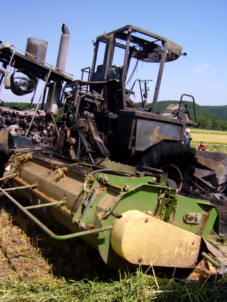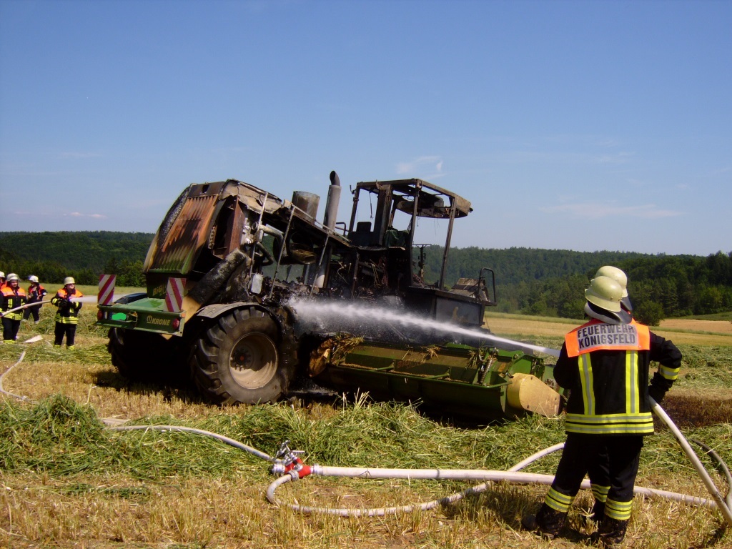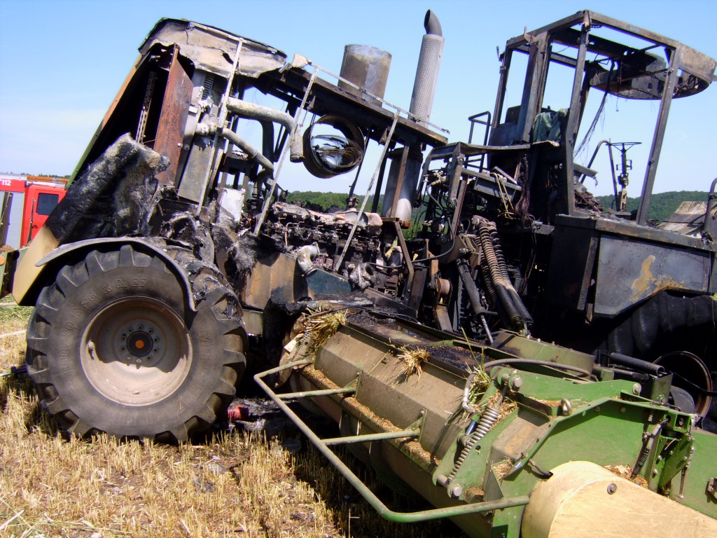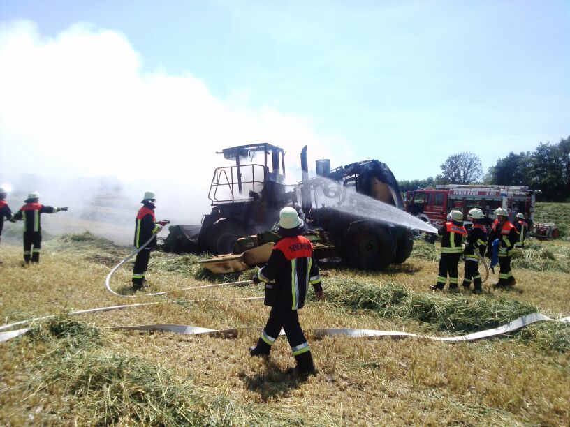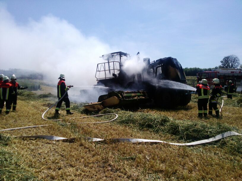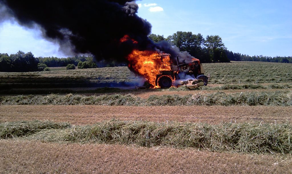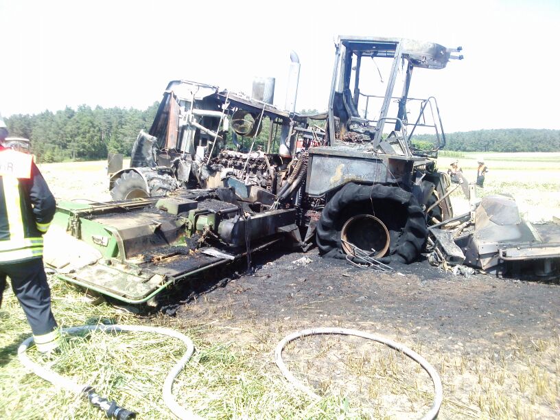geriet ein selbstfahrendes Mähwerk in Brand. Der Landwirt, der eine