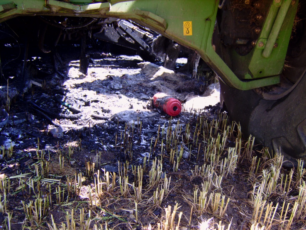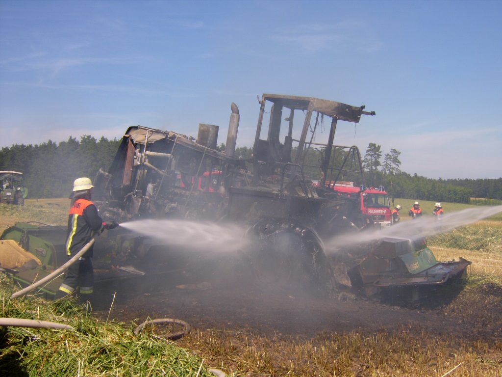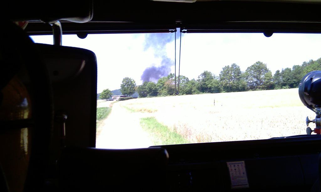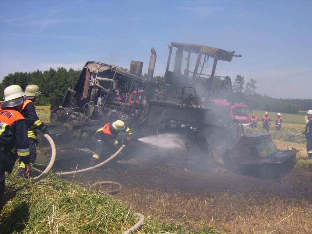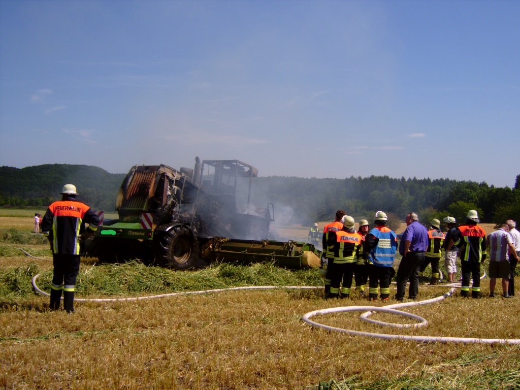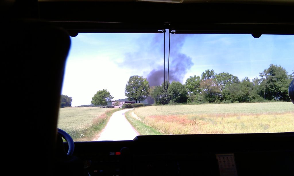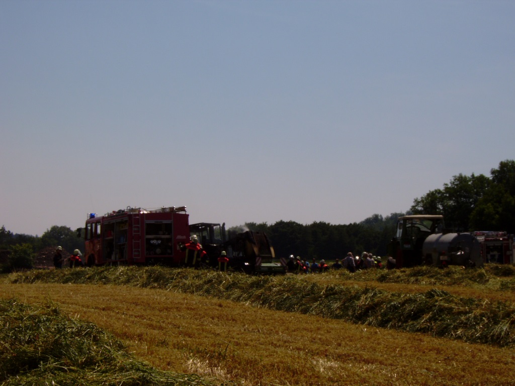 geriet ein selbstfahrendes Mähwerk in Brand. Der Landwirt, der eine