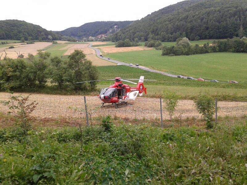der RTH Christoph 27, NAW, RTW, die Polizei sowie die Feuerwehrführungskräfte