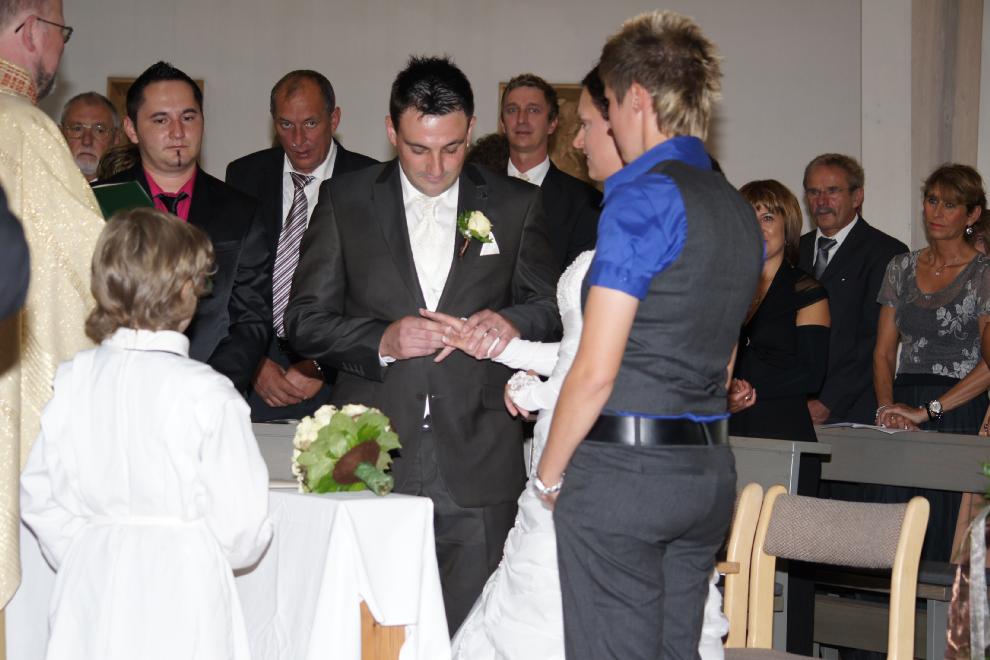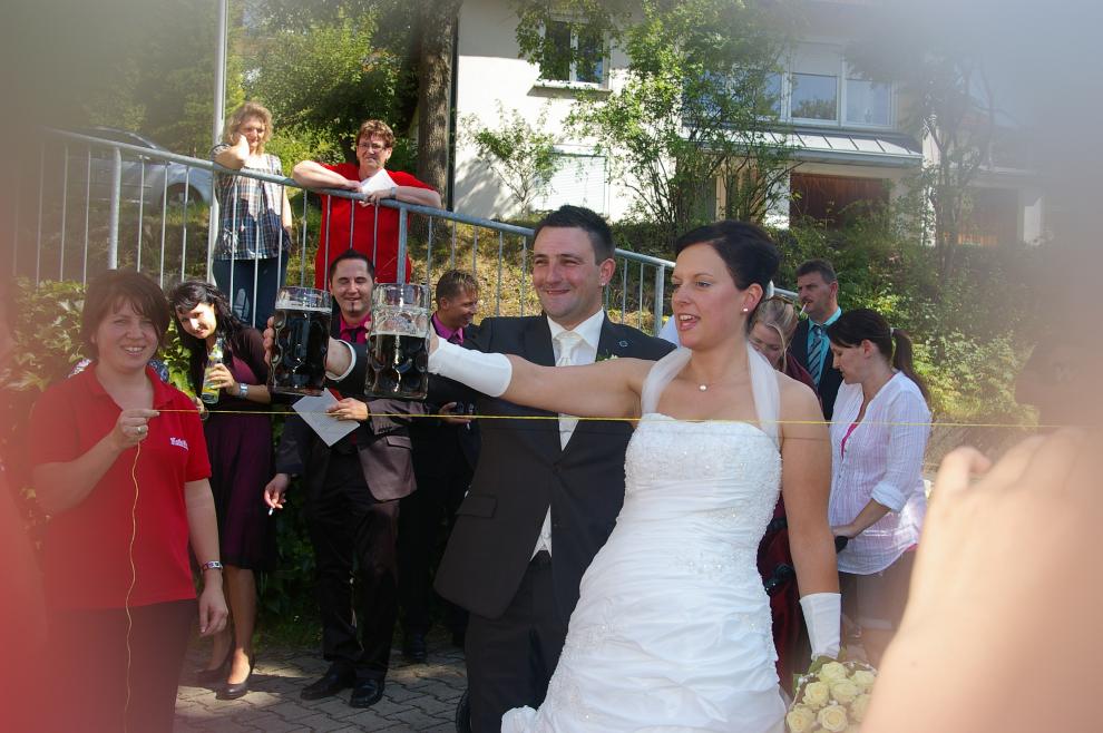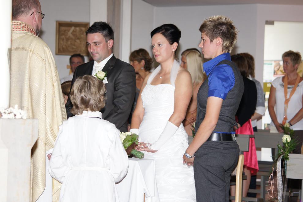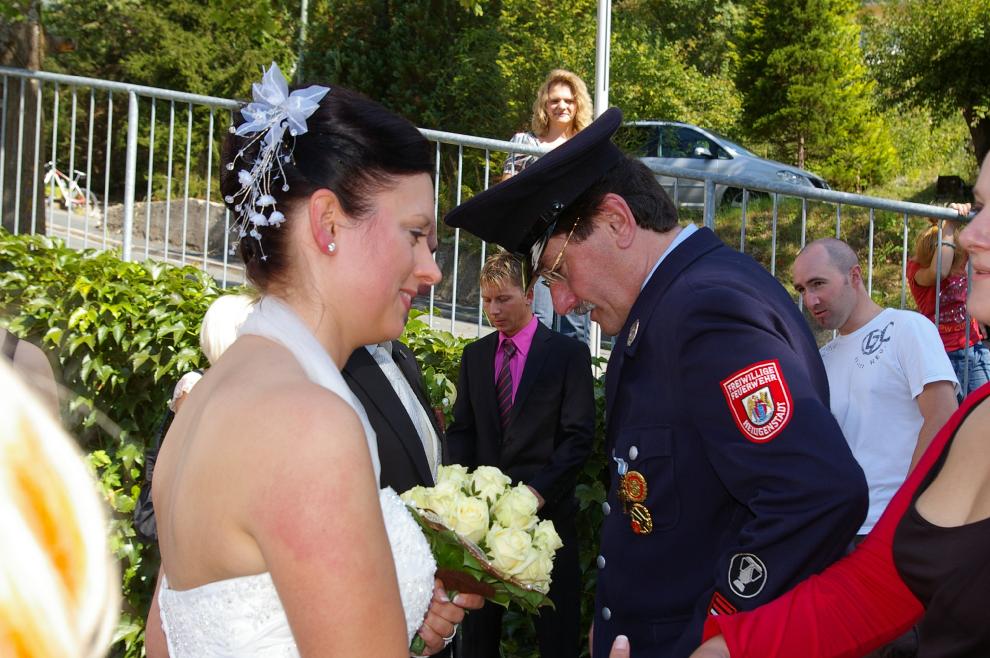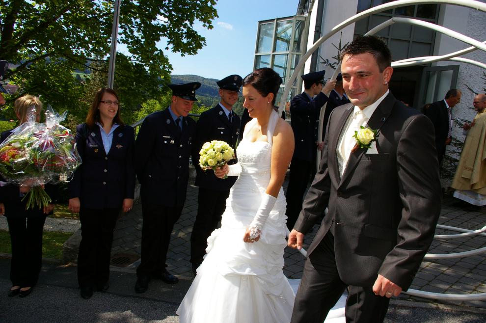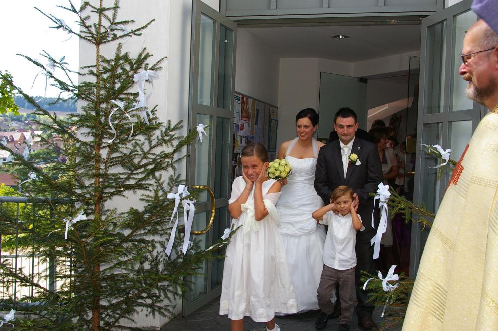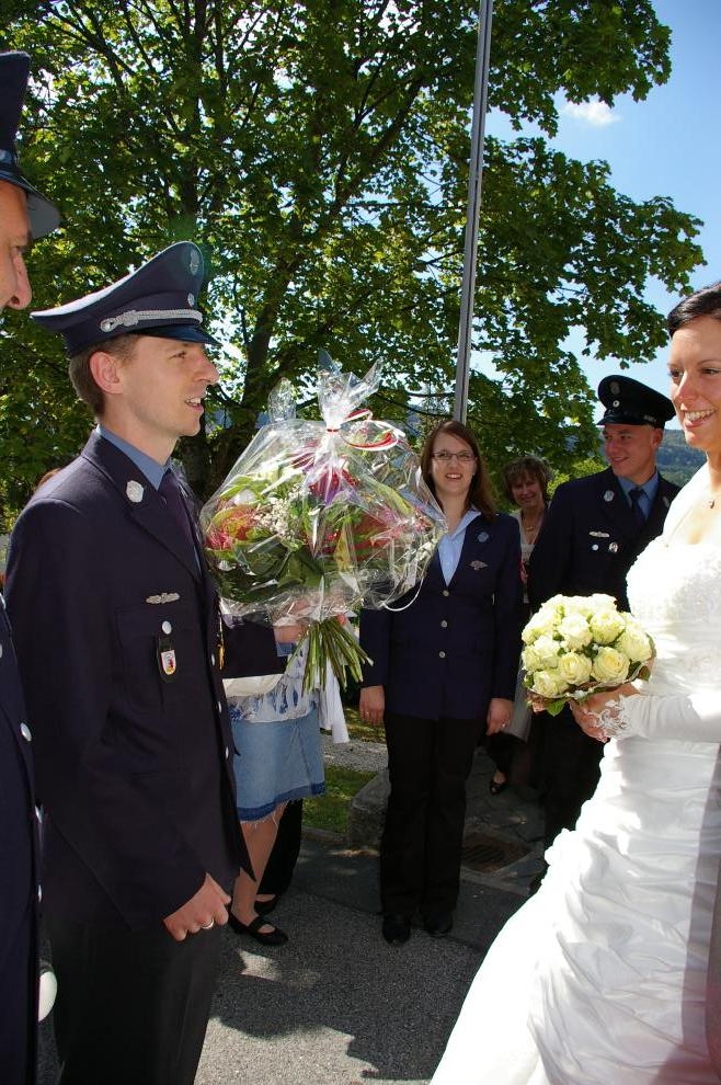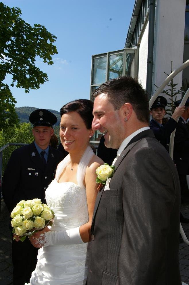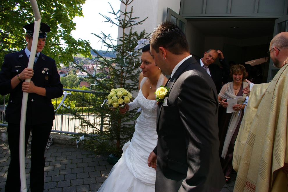 Am 3. September haben sich Nina und Paul in der Pfarrkirche St. Paul in Heiligenstadt das Ja-Wort gegeben. Die Brautmesse hielt Pfarrer Matthias Wünsche, ehemals Pfarrer in Heiligenstadt. Nach der Heiligen Messe fand auf dem Kirchplatz ein Stehempfang statt. Zuvor ging das Brautpaar durch den Spalier ihrer Feuerwehrkameraden (beide sind aktive Feuerwehrler), die sich am Kirchenausgang mit einer "Schlauchspirale" postiert hatten. Hier einige Impressionen: Ankunft des Brautpaares
