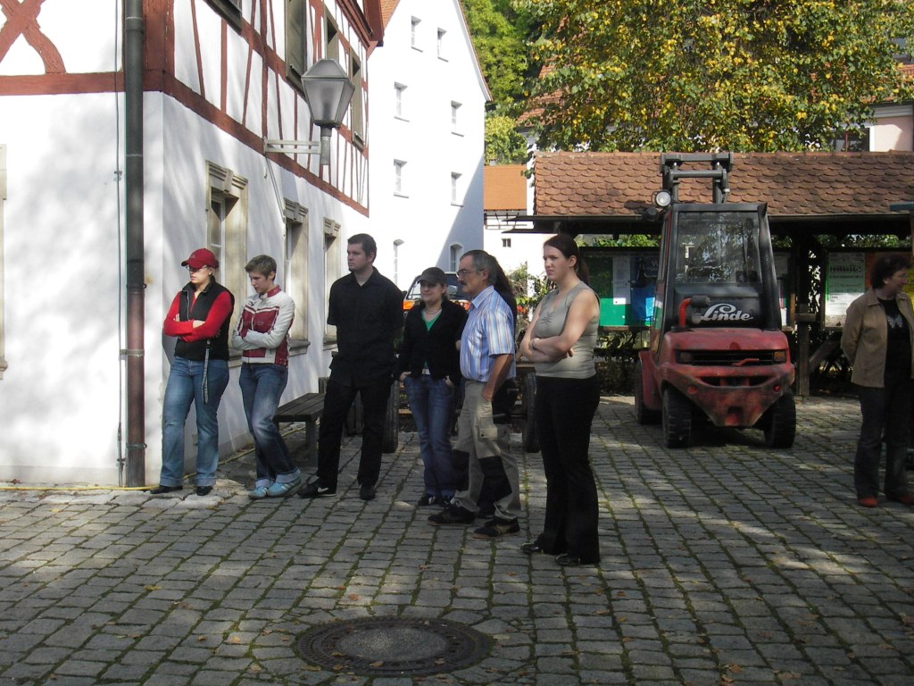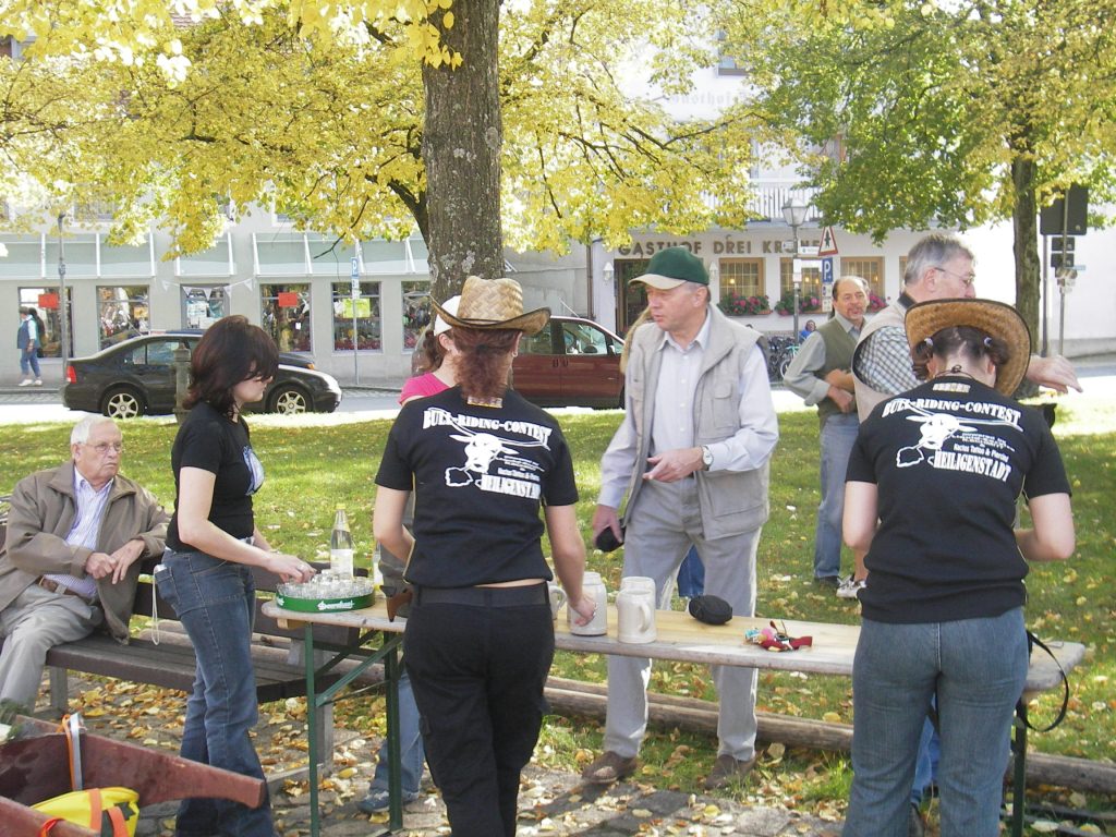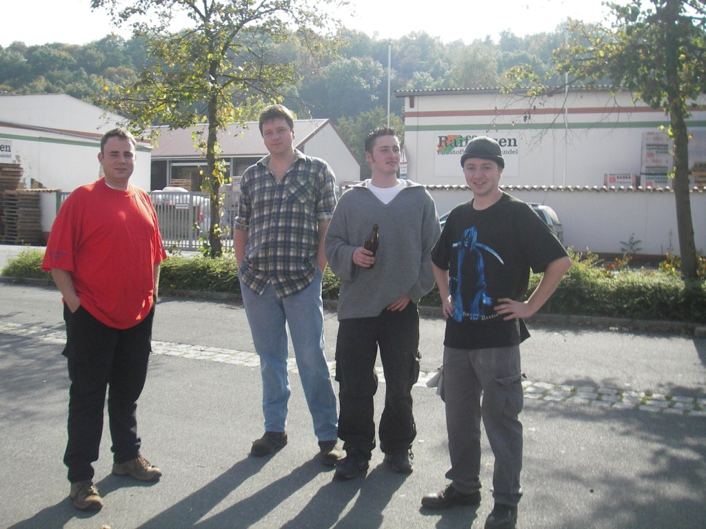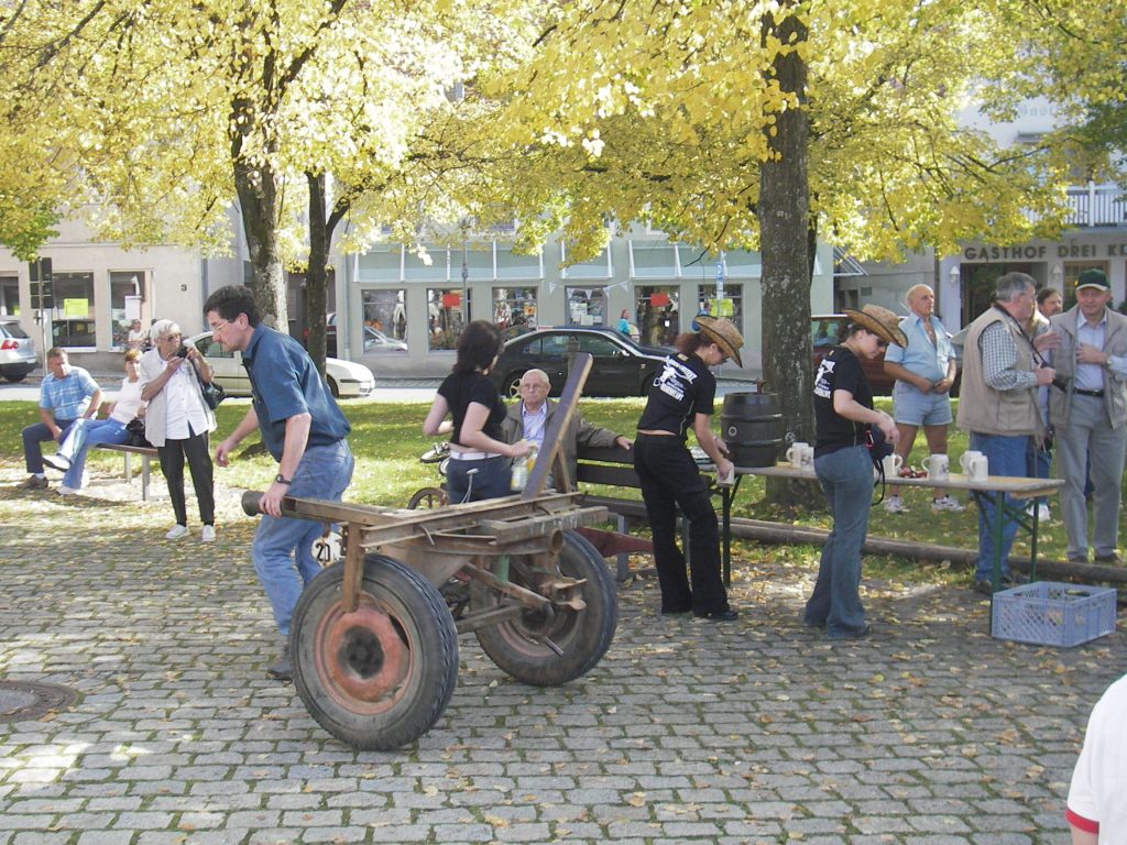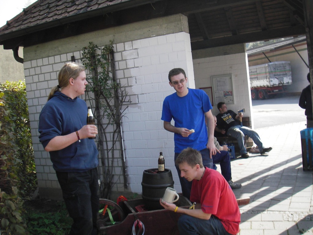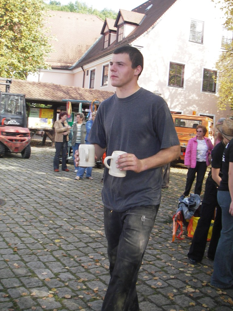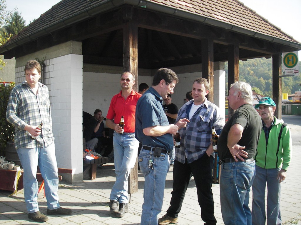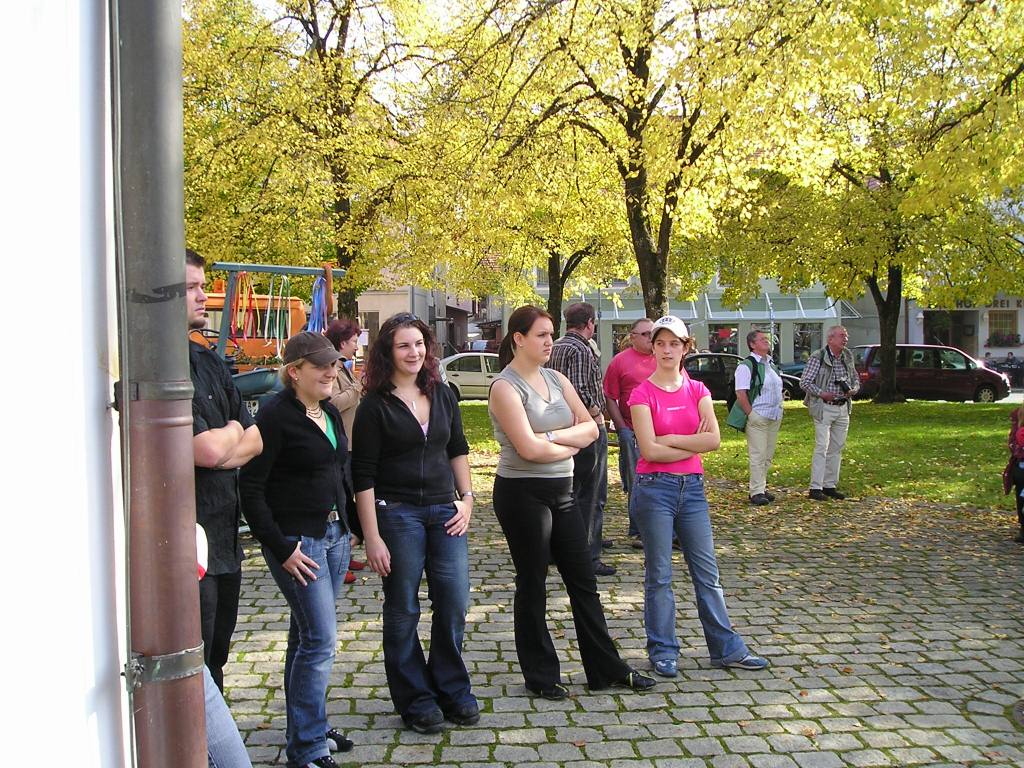 Das Schmücken: Erstmal stärken, ... ...während die Damen nun "angreifen". Verzierung durch einen Mann vom Fach. Nun wird der Transport vorbereitet. Erst noch mal stärken und kurz relaxen, bevor abmarschiert wird. Der Verpflegungswagen für unterwegs (ist ja ein langer Weg von der Raiffeisenstrasse zum Marktplatz). Alles wird nochmals überprüft... ...Unter Aufsicht, versteht sich! Unterwegs war soviel zu tun 8jede helfende Hand wurde benötigt) - deshalb gibt es vom Marschweg keine Bilder. Der Baum wird eingesetzt, ... ... während das Transportmittel aus der Schusslinie gebracht wird. Erfahrene, langjährige Helfer waren auch vor Ort. Der "Aufstellmeister" gibt letzte Anweisungen... ... während sich andere um das leibliche Wohl der hart arbeitenden Kameraden kümmern. Mit von der Partie war wie immer die Hohenpölzer Blasmusik. Bald ist's geschafft! Die letzten Keile werden angebracht. Und dann war's geschafft! Die Stärkung danach. Leichte Nachbesserungen.