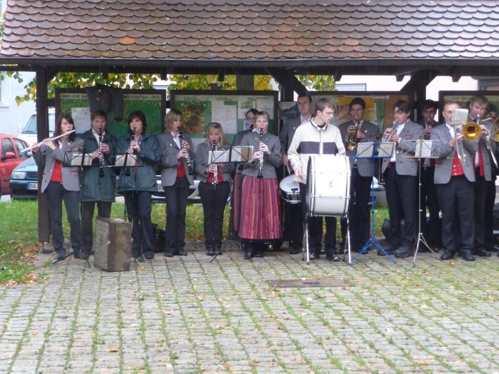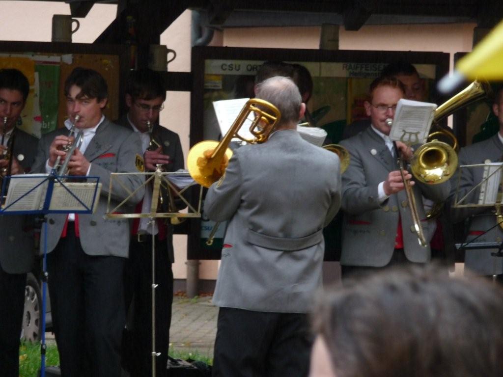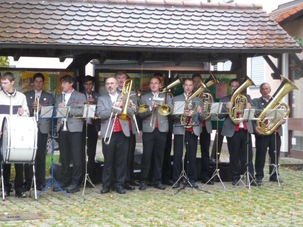 Die Blaskapelle aus Hohenpölz übernahm nun die musikalische Umrahmung - von einem trockenen Fleck aus.