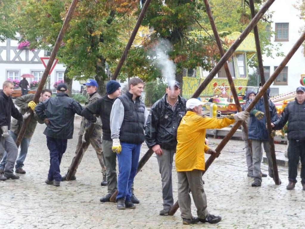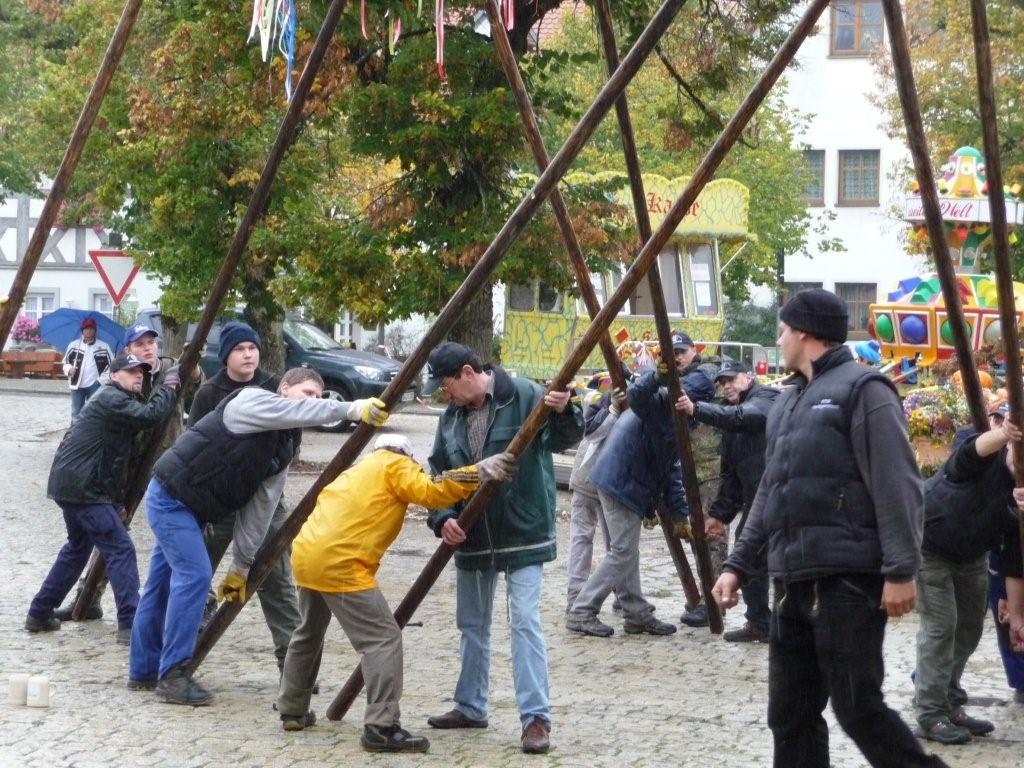 Am 10. Oktober war es wieder so weit: die FF Heiligenstadt stellte zur Herbstkerwa den Kerwa-Baum auf. Die 27 m lange Fichte wurde am Morgen aus dem Gemeindewald abgeholt.
