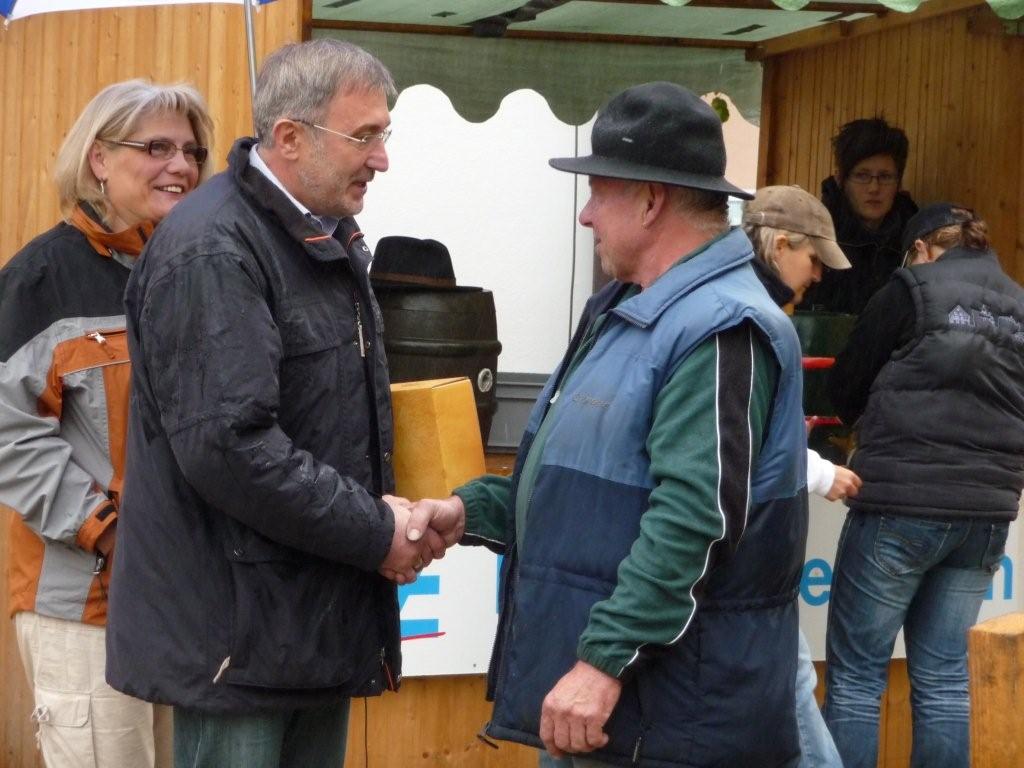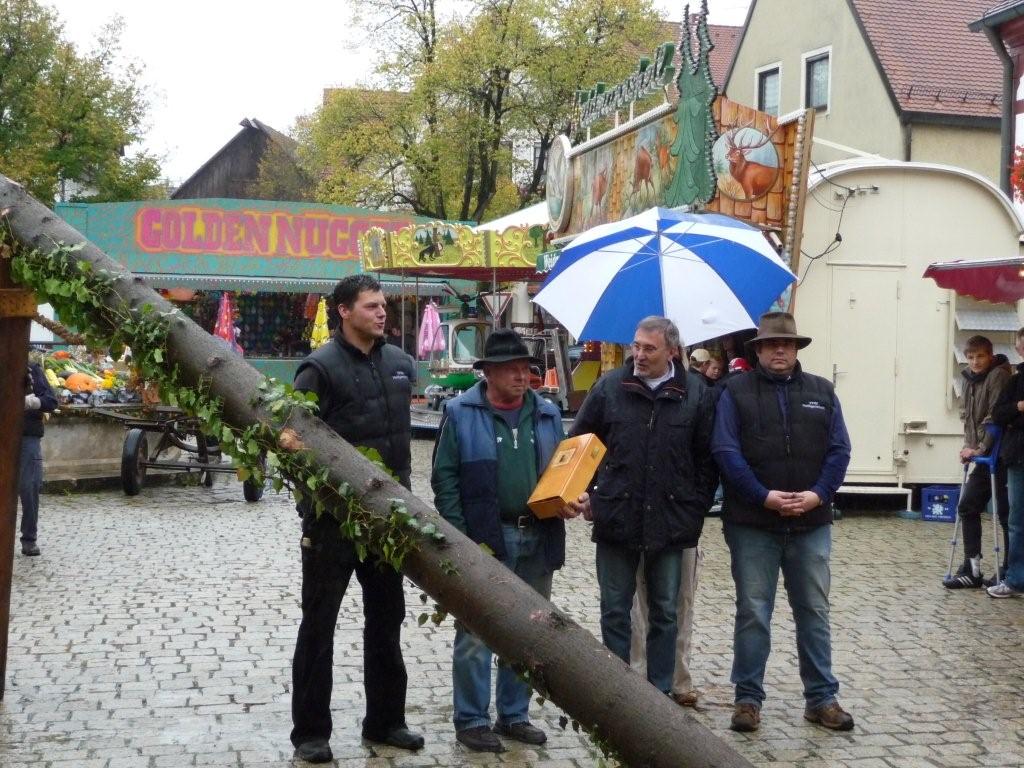 Hannaß wurde geehrt: Er war schon 40 mal beim Baumaufstellen dabei. Bürgermeister Krämer ...