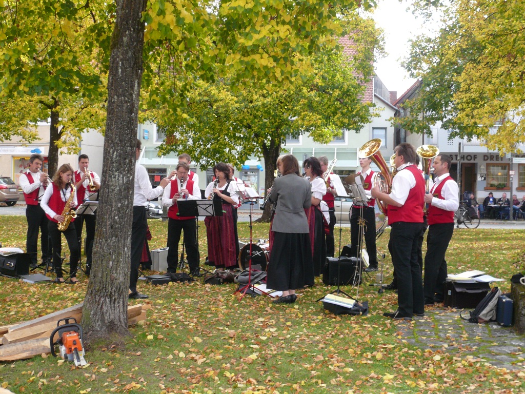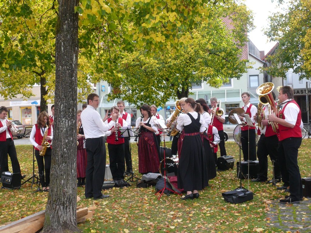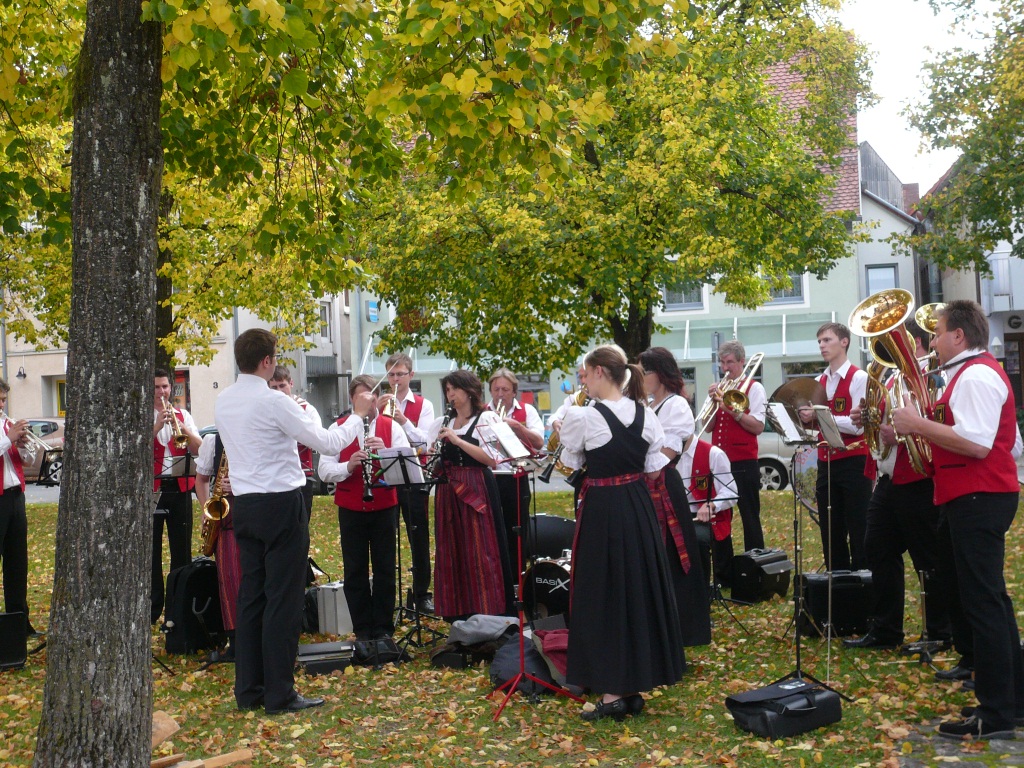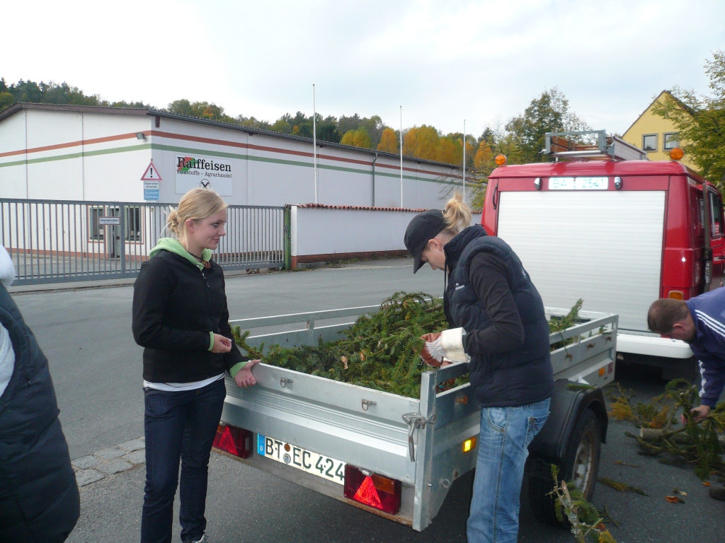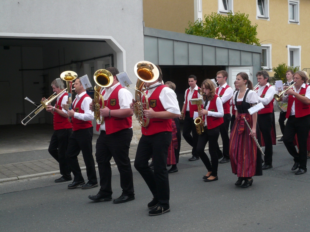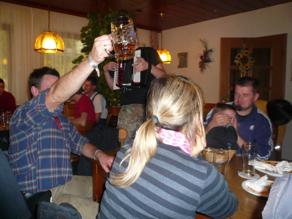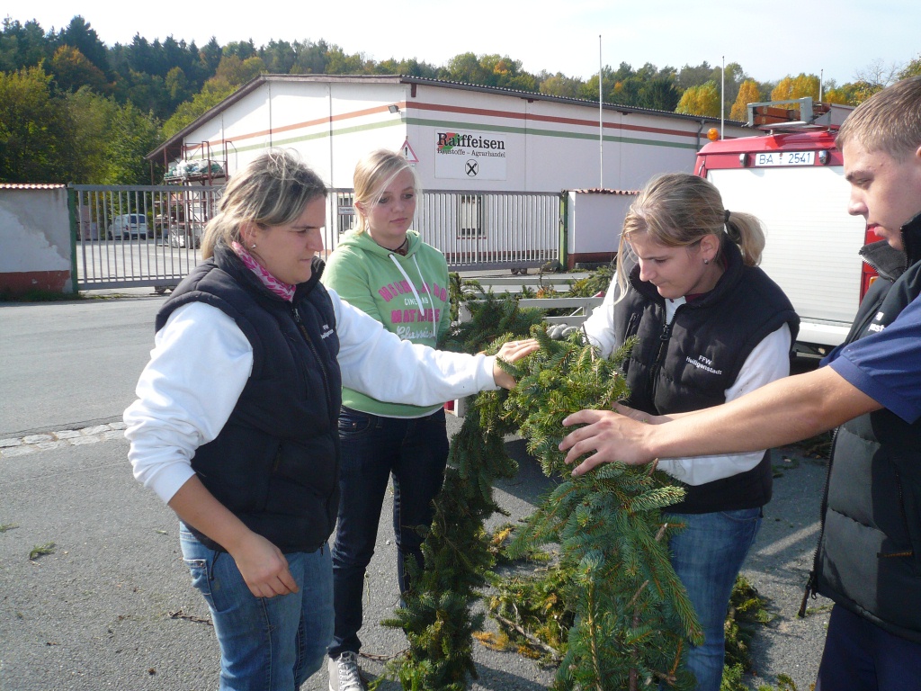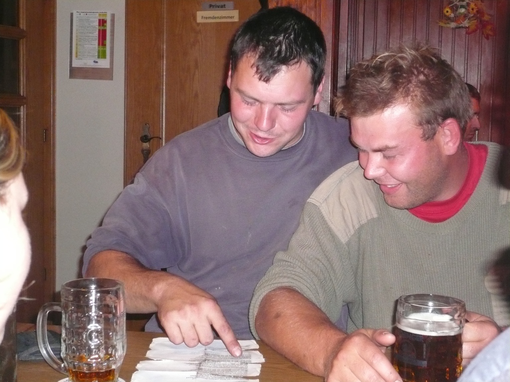 Traditionsgemäß stellte die FF Heiligenstadt auch in diesem Jahr wieder den Kerwa-Baum auf. Während "die Männer" den Baum holten, banden "die Frauen" den Kranz. Der Kranz wird "angepasst". Die Schleifen müssen auch vorbereitet werden. Wenigstens kann man sich dazu setzen :-) Sieht schon recht gut aus. Die Spitze wird auch schon.... Gleich geht's los - und die Jüngsten dürfen mit dabei sein (Nachwuchsgewinnung und -förderung :-) ) Helmut, wenn Du Deine Hände suchst,.... Und jetzt setzt sich der Zug in Bewegung - für die lange Marschstrecke und den beschwerlichen Weg sowie für die kräftezehrende Arbeit wurde extra ein Verpflegungsgefährt beschafft! Mit Musik geht es besser! Die Hauptstrasse ist erreicht. Und nun der Schwenk zum Marktplatz Der Marktplatz ist erreicht - und der Fahrer muss sich nun voll konzentrieren, damit er sein Gefährt an die richtige Stelle bringt. Eine letzte Stärkung, bevor das Aufstellen beginnt ... und die Musik spielt dazu Bewundernde Blicke für die Kameraden, die den Baum aufstellen ;-) Eine wichtige Aufgabe: den Baum genau in das "Loch" zu postieren - unser Bürgermeister höchstpersönlich überwcht dies. Was will uns dieser Gesichtsausdruck sagen? So langsam geht's aufwärts. Rainer hat das Kommando Mach mal ein schönes Gesicht Geht doch Auch das Zuschauen macht hungrig Passt's vorne? Ja! Arbeitsteilung: zwei schauen nach oben, zwei nach unten Bald ist es soweit Sieht schon fast gut aus! Und jetzt die Akrobatennummer (Gerüchten zu Folge soll diese akrobatische Leistung ins Sommerprogramm des Zirkus Krone aufgenommen werden - die menschliche Pyramide) Noch ist es kostenlos - im Sommer dann wird EIntritt verlangt! Und dann wurde Kerwa gefeiert - gleich beim Aichinger am Marktplatz Maddin mit seiner Quetsche spielte wieder auf und brachte eine Bombenstimmung in die Gaststube