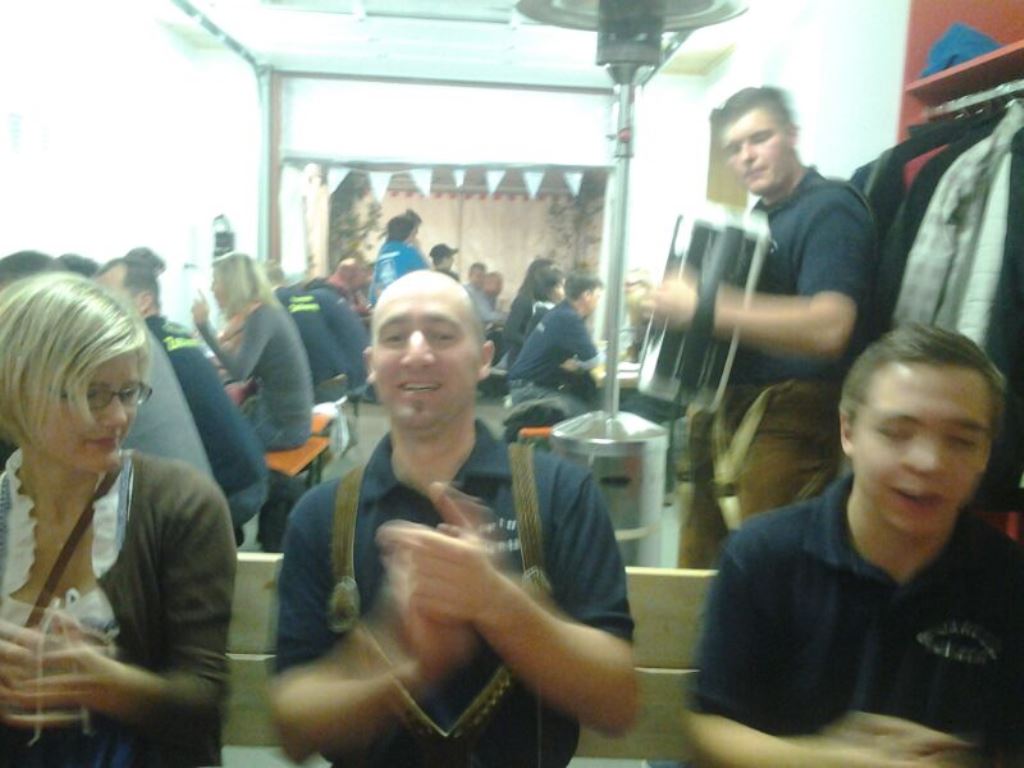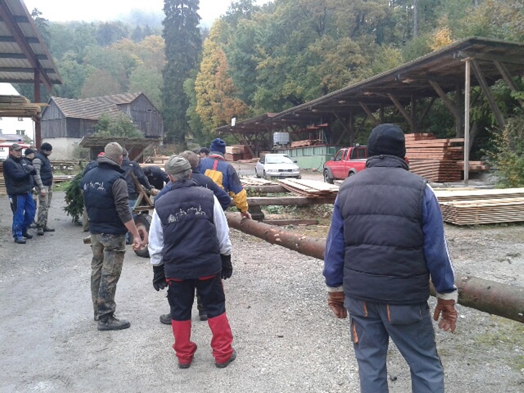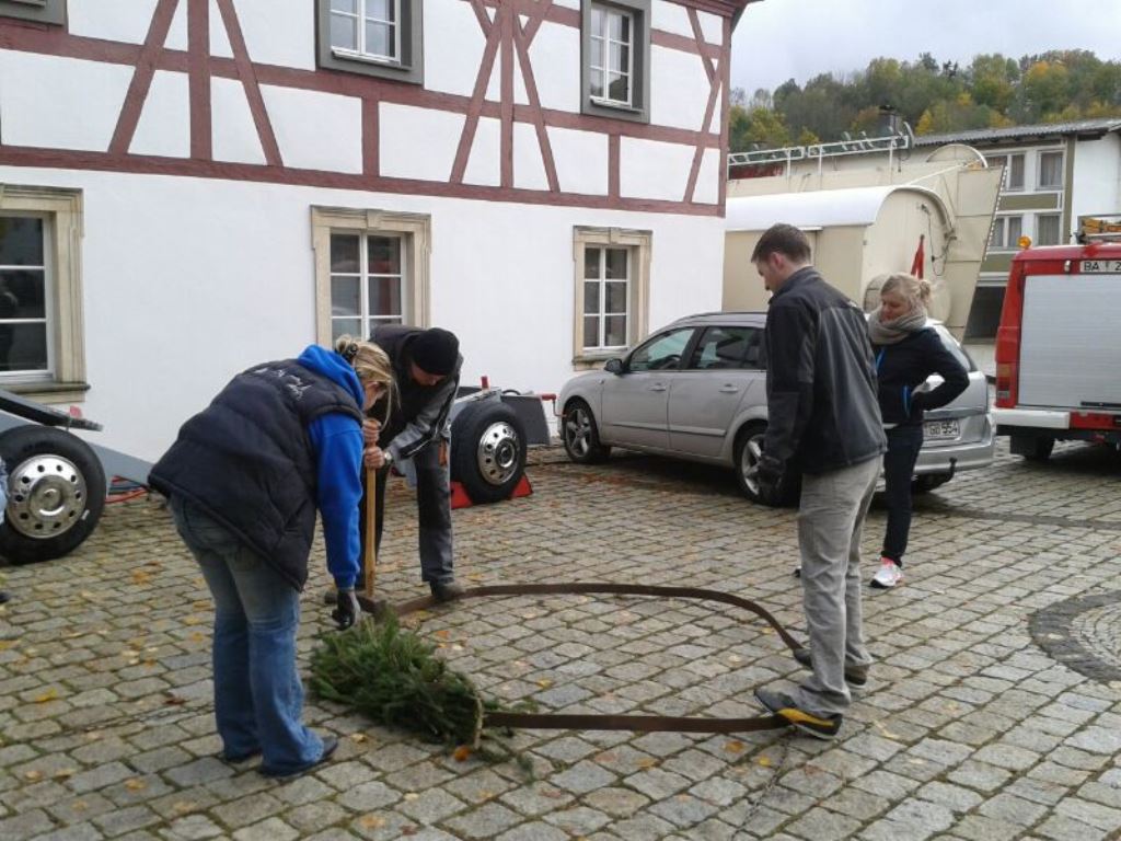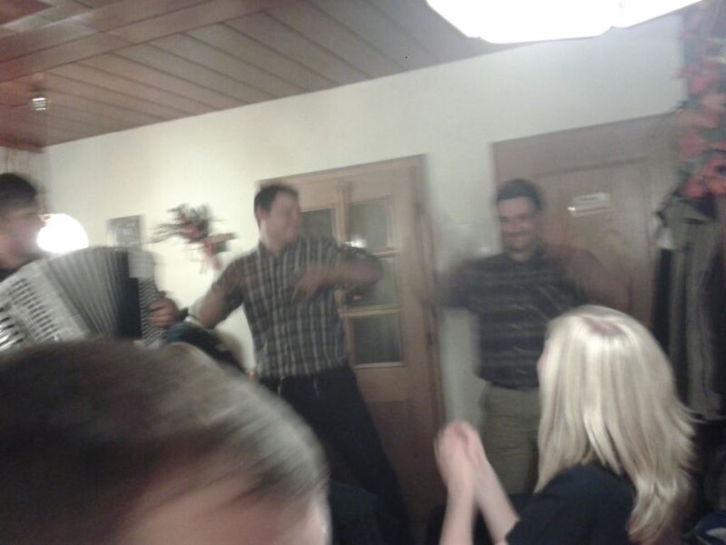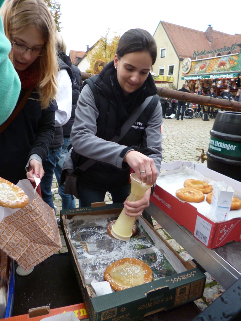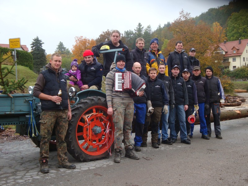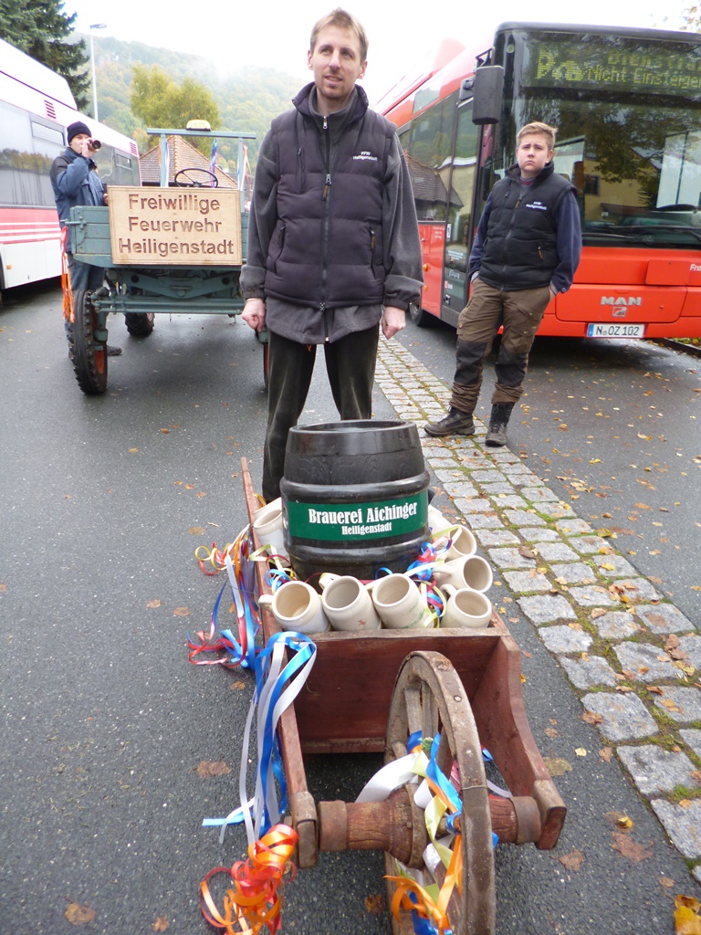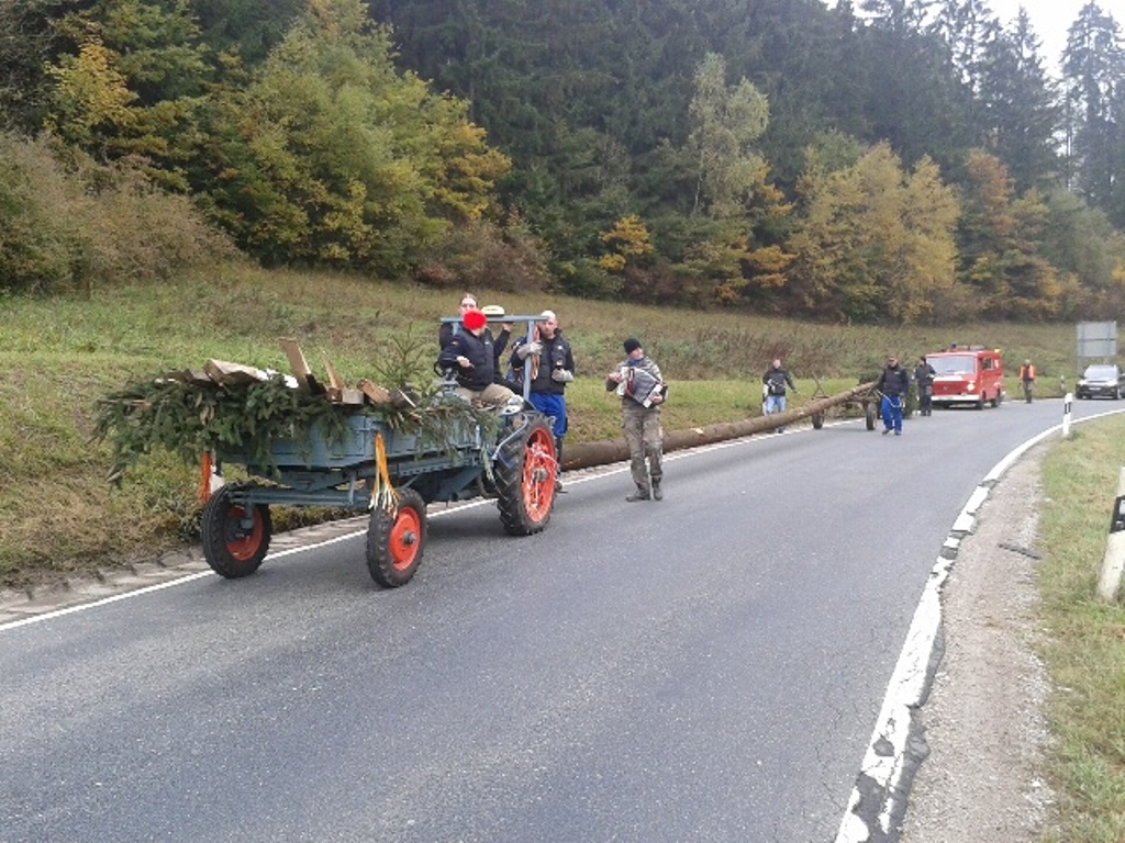 Und auch die Löschschnecken hatten ihren ersten "Einsatz" Traditionsgemäß war der Kommandant für die Versorgung zuständig. Und dann ging's los, natürlich mit Blasmusik, wie es sich gehört. Nun wurden die Küchla verkauft. Der Baum wird nun aufgestellt. Unser Bürgermeister bei den Löschschnecken.