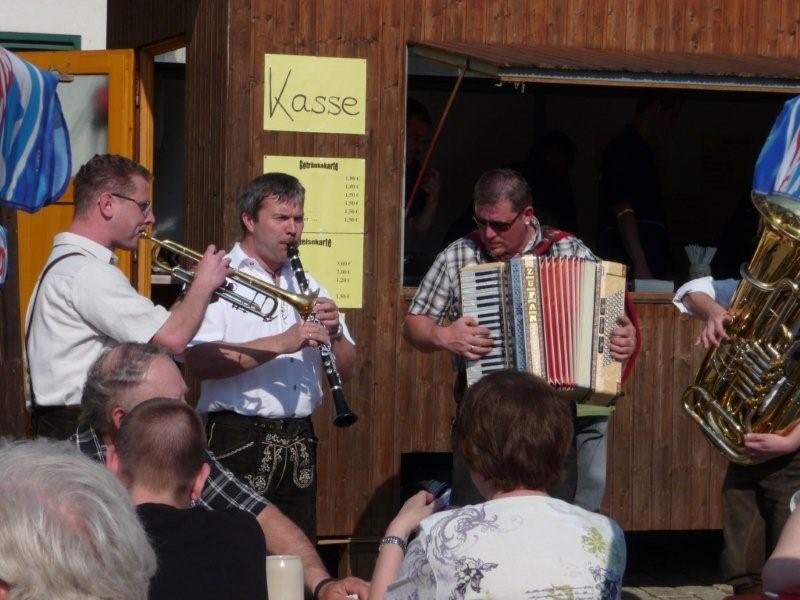Und so sieht man nach einigen Musikstücken in der prallen Sonne aus! (Originalton: "Wir können 12 Stunden ohne Noten spielen, aber nicht eine ohne Bier!")