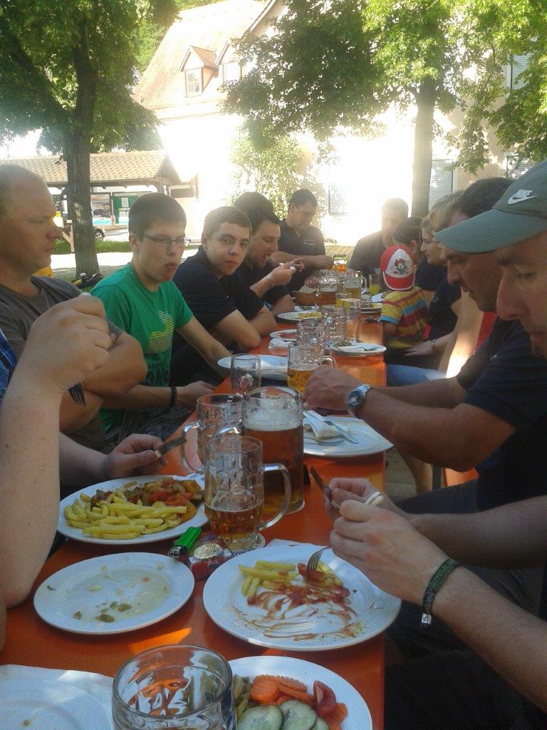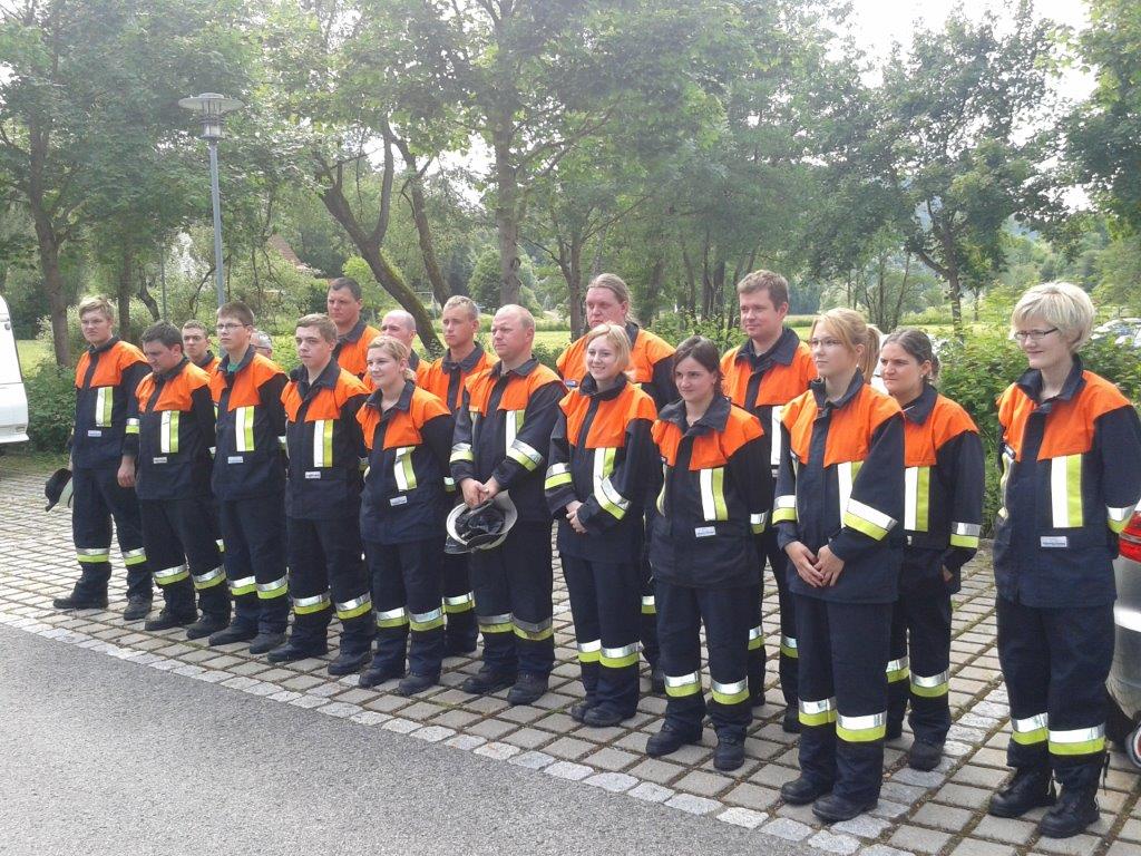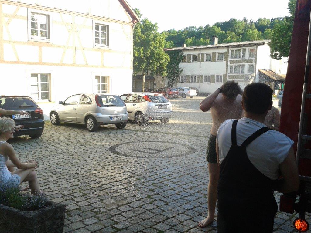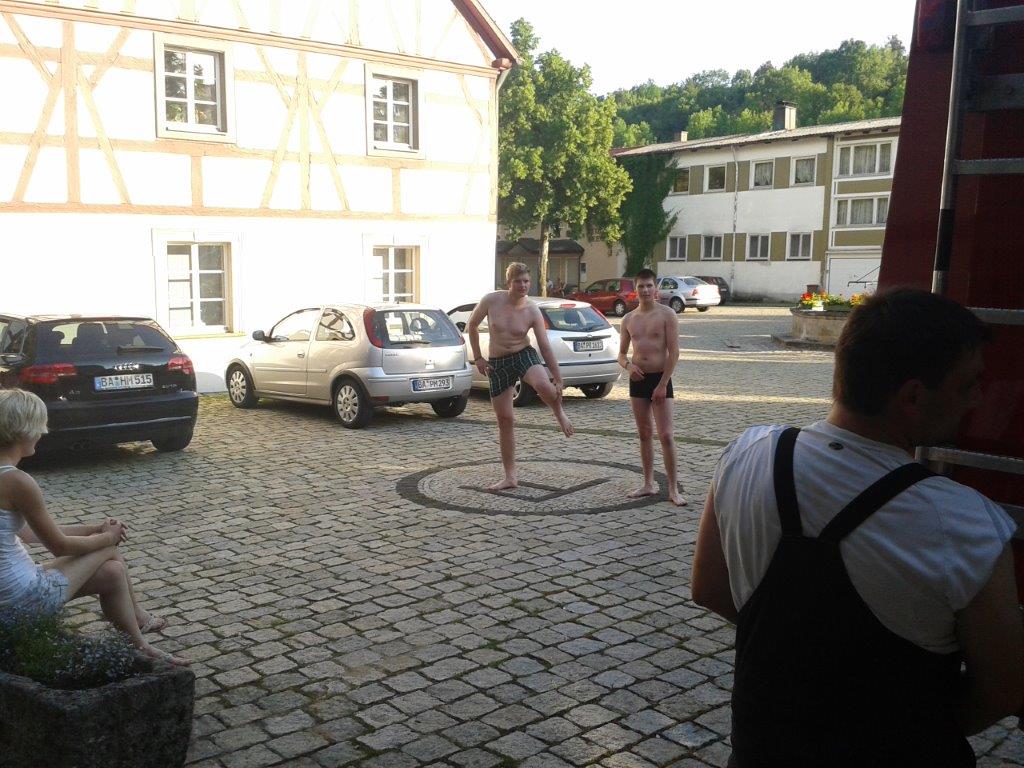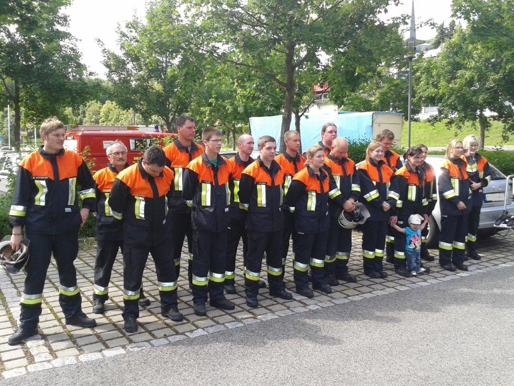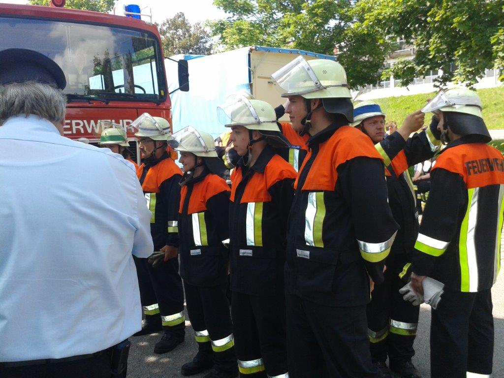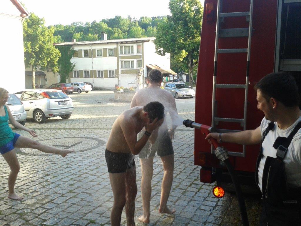 Vor einer solchen Prüfung wird natürlich geübt - was bei über 30° und in Schutzanzug und Helm nicht immer sehr angenehm ist - da tut eine Erfrischung nah der Übung gut:
