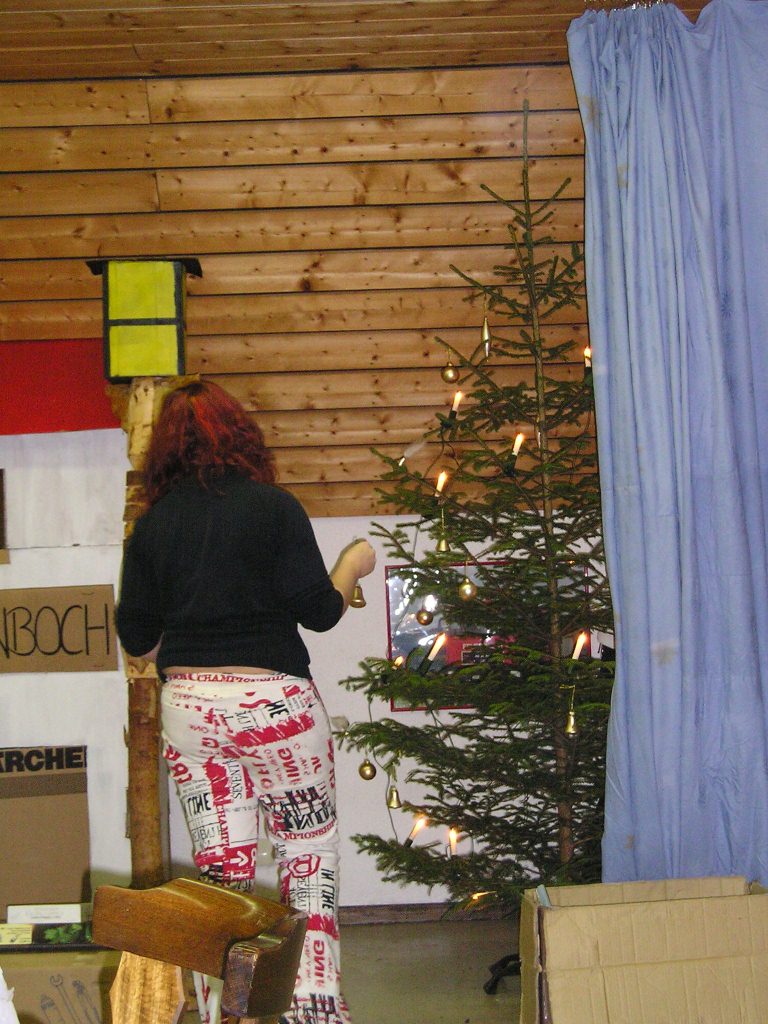 Am Barbaratag (4. Dezember) lud die FF Heiligenstadt zur Weihnachtsfeier ein. Wieder hatten die Jugendfeuerwehr und das bewährte Vorbereitungsteam die Organisation und Durchführung übernommen - es war dies die 10. Weihnachtsfeier! Einige Ereignisse des Jahres wurden nochmals aufgegriffen. Hier einige Bilder: Die Vorbereitung: Vom Dachboden wurden die Utensilien geholt. Ideen wurden "im Laptop" gefunden Scheint recht lustig zu sein, das Programm :-) Alles wird auf Hochglanz gebracht Die Proben beginnen Und immer wieder der Laptop. Kostümprobe Der Baum wird geschmückt Die Bar wird gebaut.. ... und künstlerisch bearbeitet. Weihnachtliche Dekoration wird angebracht Die Reisnägel waren genau abgezählt. Passt scho! Jugendfeuerwehr: Rückansicht... und Vorderansicht Künstler am Werk Die Getränkekarte Was soll uns dieses Bild sagen? In action.. .. hoch konzentriert! "Was das wohl werden soll?" Utensilien für die bar Das fertige Kunstwerk Alles gerichtet. Check am Laptop.