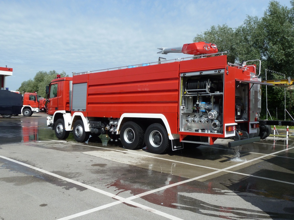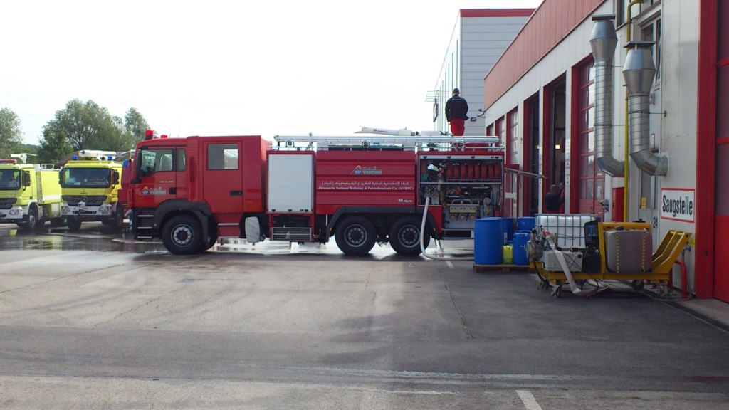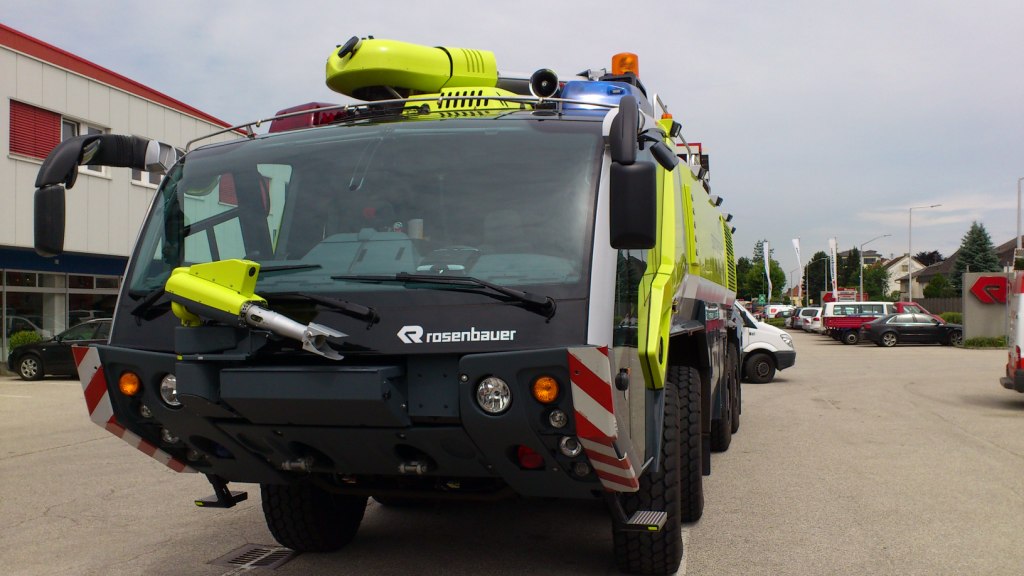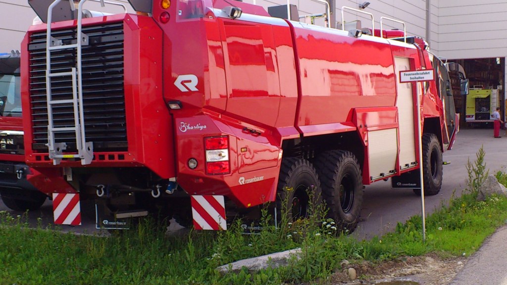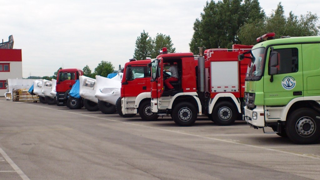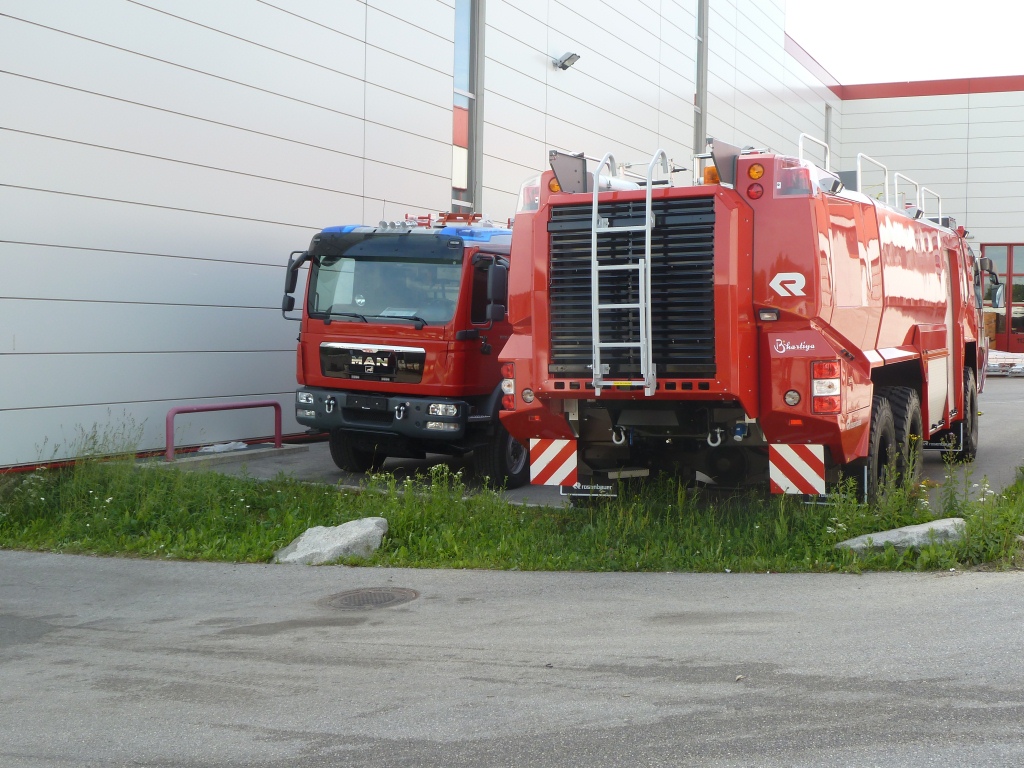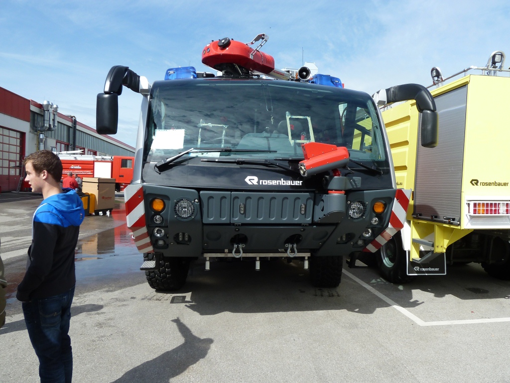 Da die Fahrzeuge der FF Heiligenstadt so langsam in die Jahre kommen, sind Bestrebungen im Gange, ein neues Löschfahrzeug anzuschaffen. Aus diesem Grund nahm die FF Heiligenstadt die Einladung zu einer Werksbesichtigung der Firma Rosenbauer im österreichischen Leonding (bei Linz) an. 7 Kameraden machten sich am 6. Juni um 4.30 Uhr auf den Weg. Die Führung begann mit einem kurzen Abriss der Firmengeschichte und einem Überblick des Portfolios und der Niederlassungen der Firma Rosenbauer. Anschließend konnten wir die Werkshallen besichtigen. Leider war das Fotografieren innerhalb der Hallen nicht erlaubt. Über den Feibereich kamen wir dann in den Abholbereich. Hier wurde uns ein Vorführfahrzeug bereitgestellt, das wir genau unter die Lupe nahmen. Ein Mittagessen und ein Gespräch über die Möglichkeiten, ein Fahrzeug auszurüsten (angefangen bei der Farbwahl bis hin zu den kleinsten Einzelteilen der feuerwehrtechnischen Beladung) bildeten den Abschluss der Führung. Hier die Bilder: Hier wurde gerade die Pumpe getestet. Das Fahrzeug im Vordergrund geht nach Ägypten. Nicht nur Feuerwehrfahrzeuge werden bei Rosenbauer gebaut - auch Wasserwerfer! Dieser imposante Koloss wirkt angsteinflössend! Nochmals das ägyptische Fahrzeug... ... und der Wasserwerfer. Ei