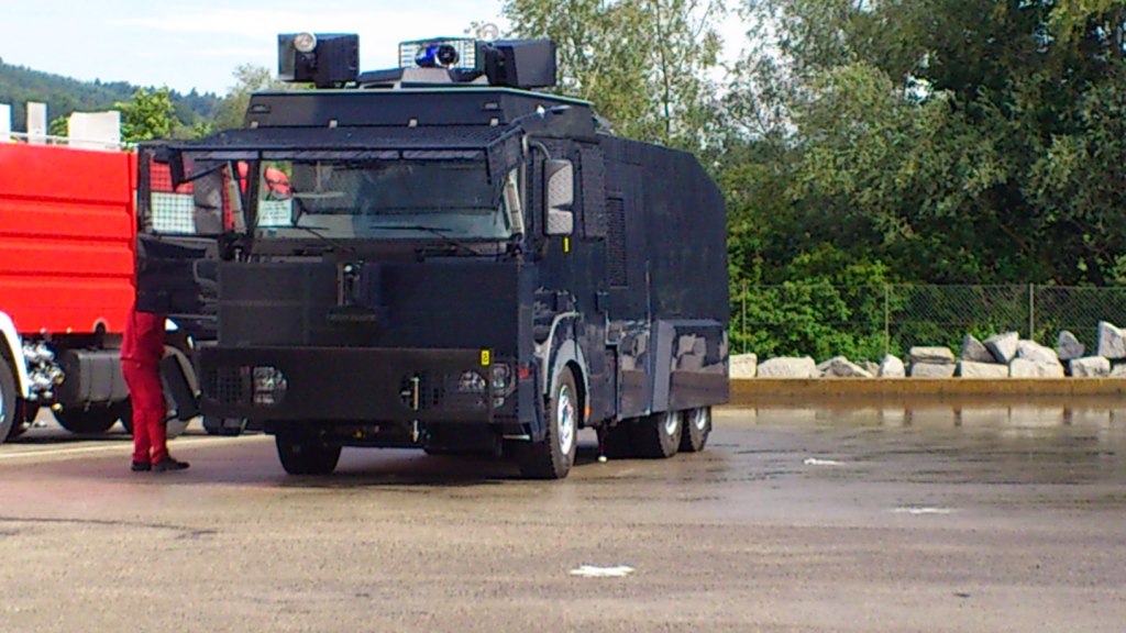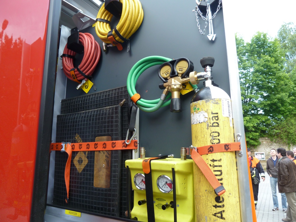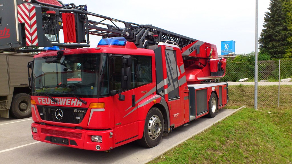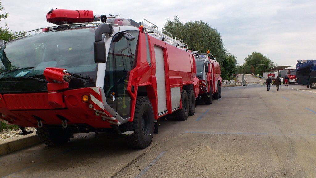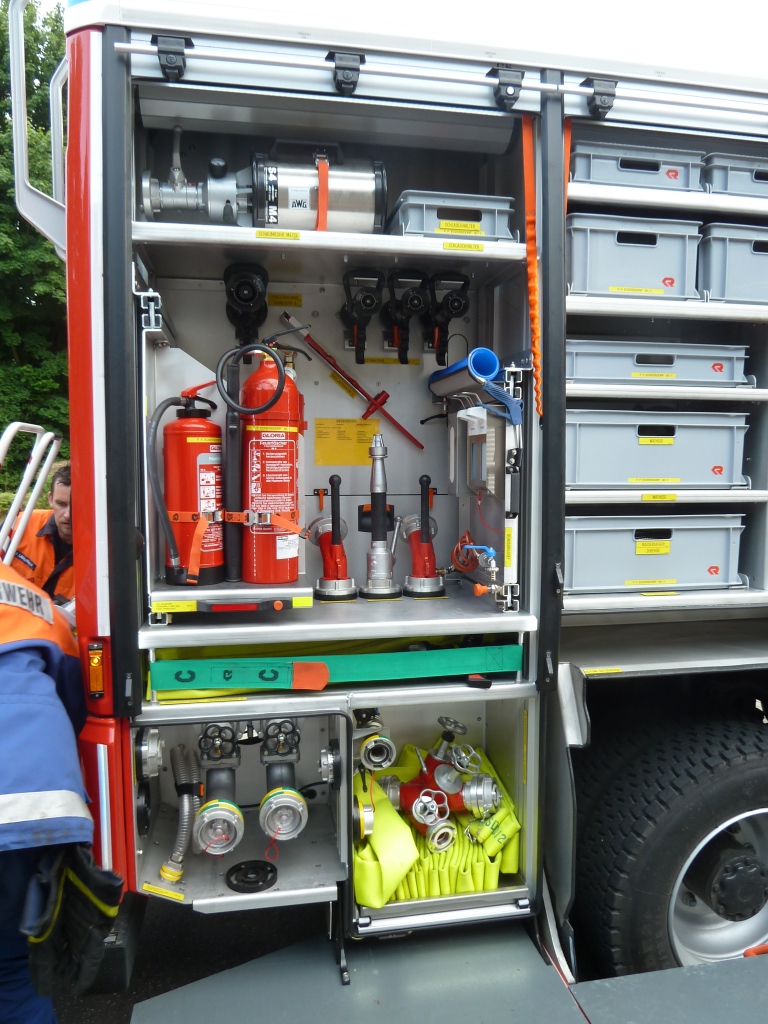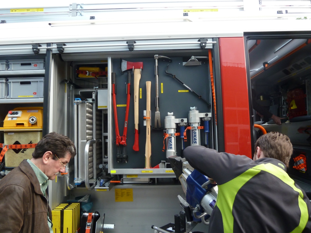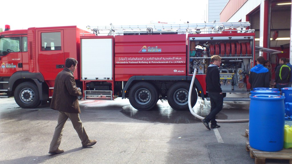 Da die Fahrzeuge der FF Heiligenstadt so langsam in die Jahre kommen, sind Bestrebungen im Gange, ein neues Löschfahrzeug anzuschaffen. Aus diesem Grund nahm die FF Heiligenstadt die Einladung zu einer Werksbesichtigung der Firma Rosenbauer im österreichischen Leonding (bei Linz) an. 7 Kameraden machten sich am 6. Juni um 4.30 Uhr auf den Weg. Die Führung begann mit einem kurzen Abriss der Firmengeschichte und einem Überblick des Portfolios und der Niederlassungen der Firma Rosenbauer. Anschließend konnten wir die Werkshallen besichtigen. Leider war das Fotografieren innerhalb der Hallen nicht erlaubt. Über den Feibereich kamen wir dann in den Abholbereich. Hier wurde uns ein Vorführfahrzeug bereitgestellt, das wir genau unter die Lupe nahmen. Ein Mittagessen und ein Gespräch über die Möglichkeiten, ein Fahrzeug auszurüsten (angefangen bei der Farbwahl bis hin zu den kleinsten Einzelteilen der feuerwehrtechnischen Beladung) bildeten den Abschluss der Führung. Hier die Bilder: Hier wurde gerade die Pumpe getestet. Das Fahrzeug im Vordergrund geht nach Ägypten. Nicht nur Feuerwehrfahrzeuge werden bei Rosenbauer gebaut - auch Wasserwerfer! Dieser imposante Koloss wirkt angsteinflössend! Nochmals das ägyptische Fahrzeug... ... und der Wasserwerfer. Ei