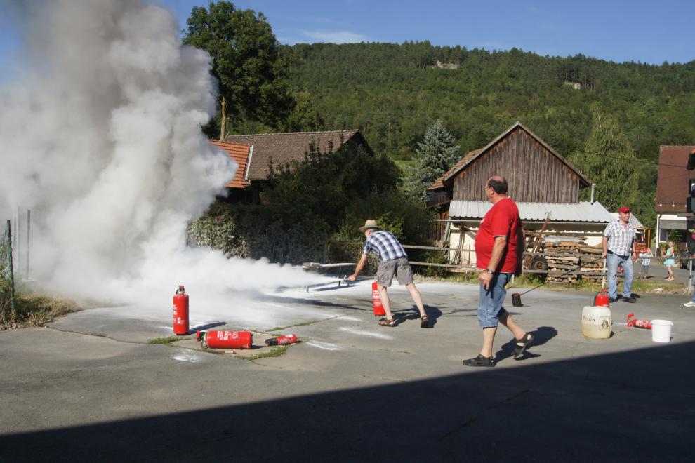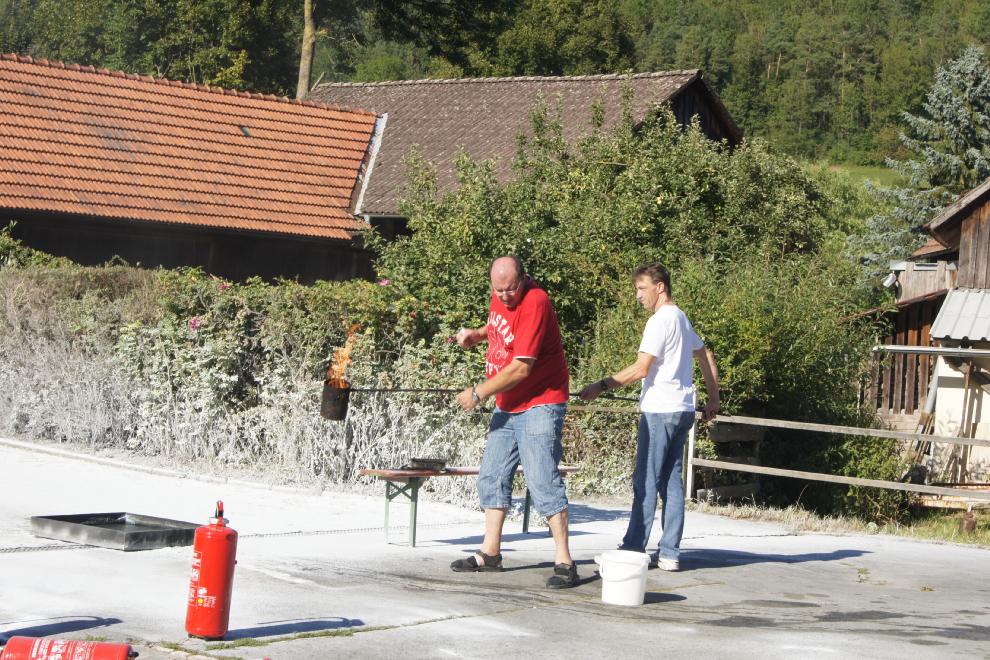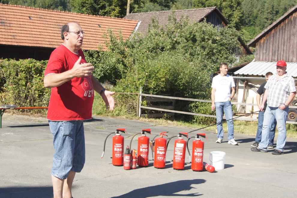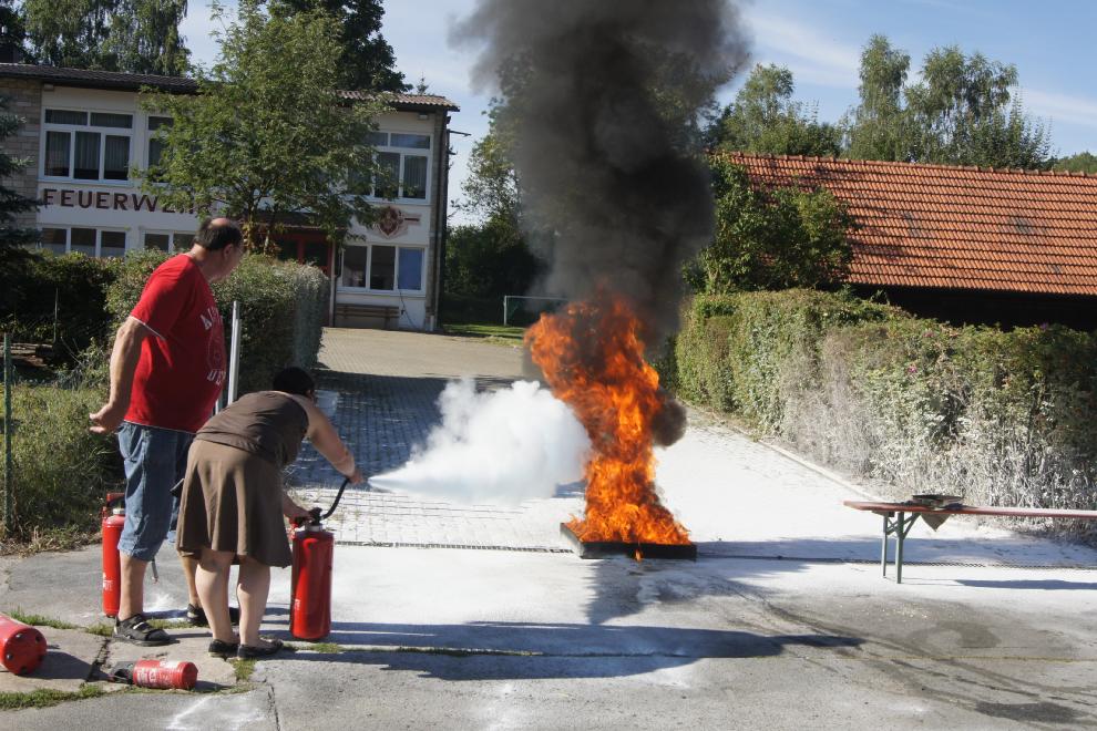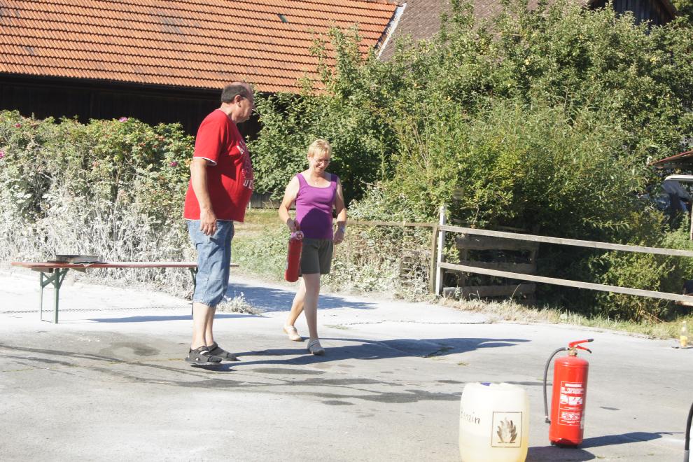 Anlässlich des Dorffestes in Oberleinleiter am Samstag, den 18. August, wurde eine Vorführung von Feuerlöschern angeboten. Selbstverständlich konnte man(n) und frau auch sich praktisch beteiligen. Diese Aktion war eines der Highlights des Dorffestes. Dankeswerter weise wurde die Vorführung von Hans Dusold aus Lohndorf durchgeführt. Anbei ein paar Impressionen: