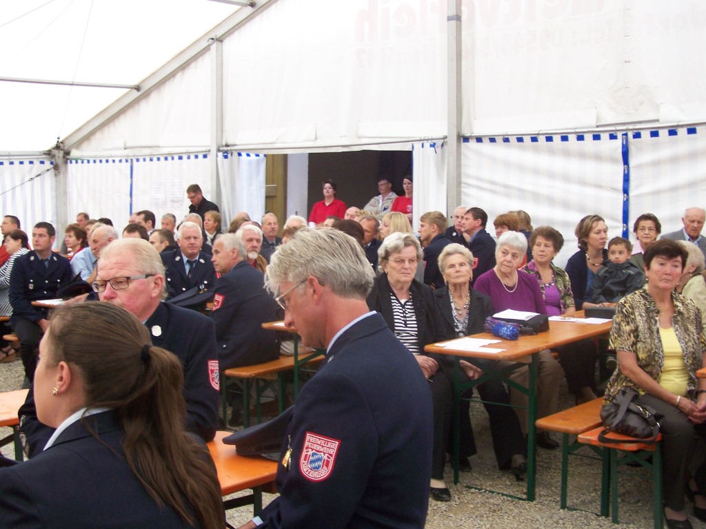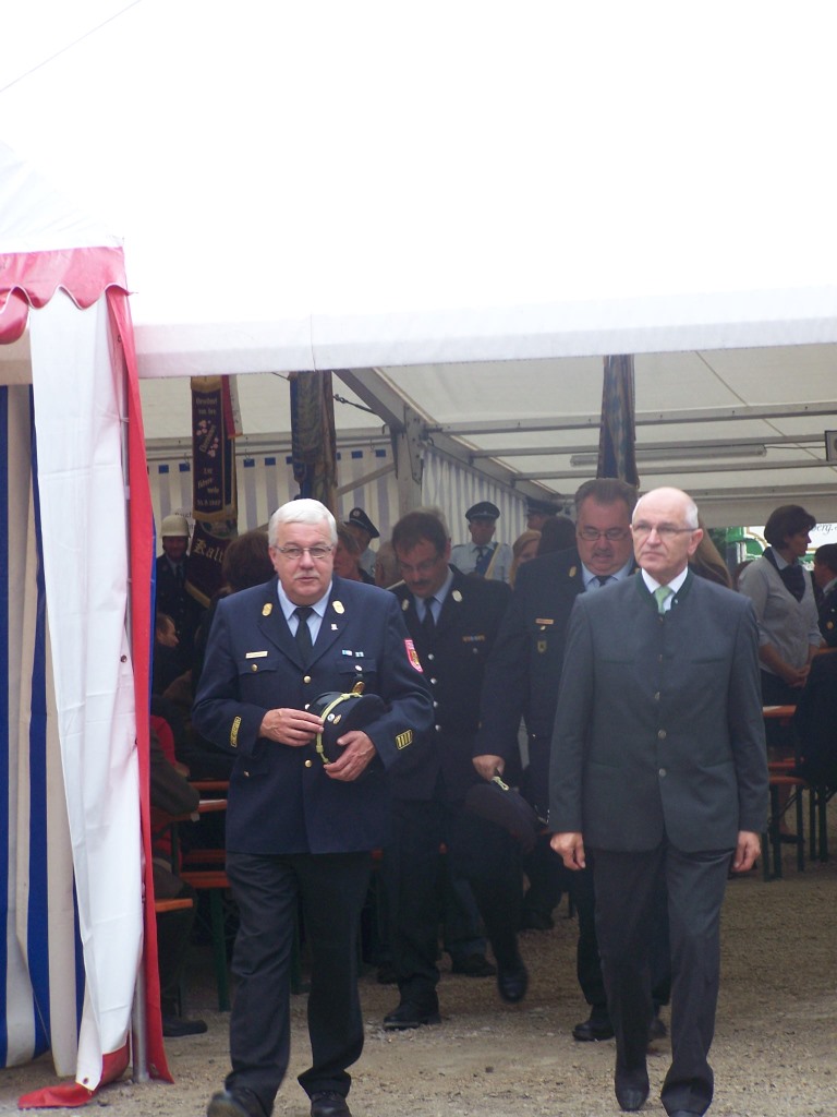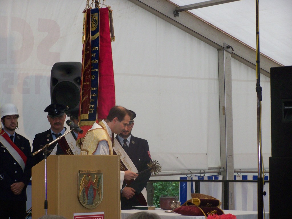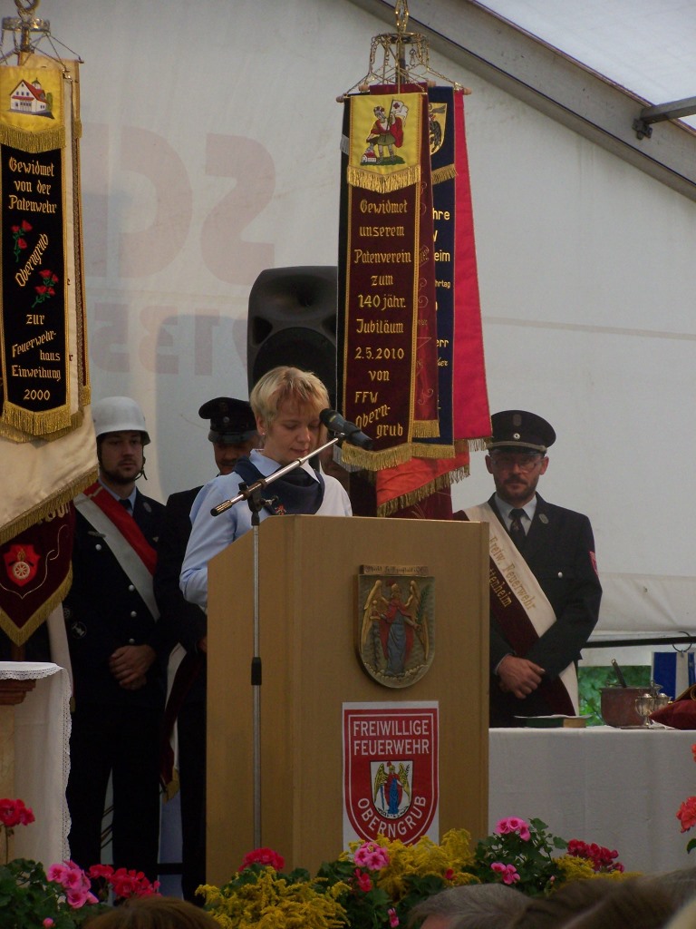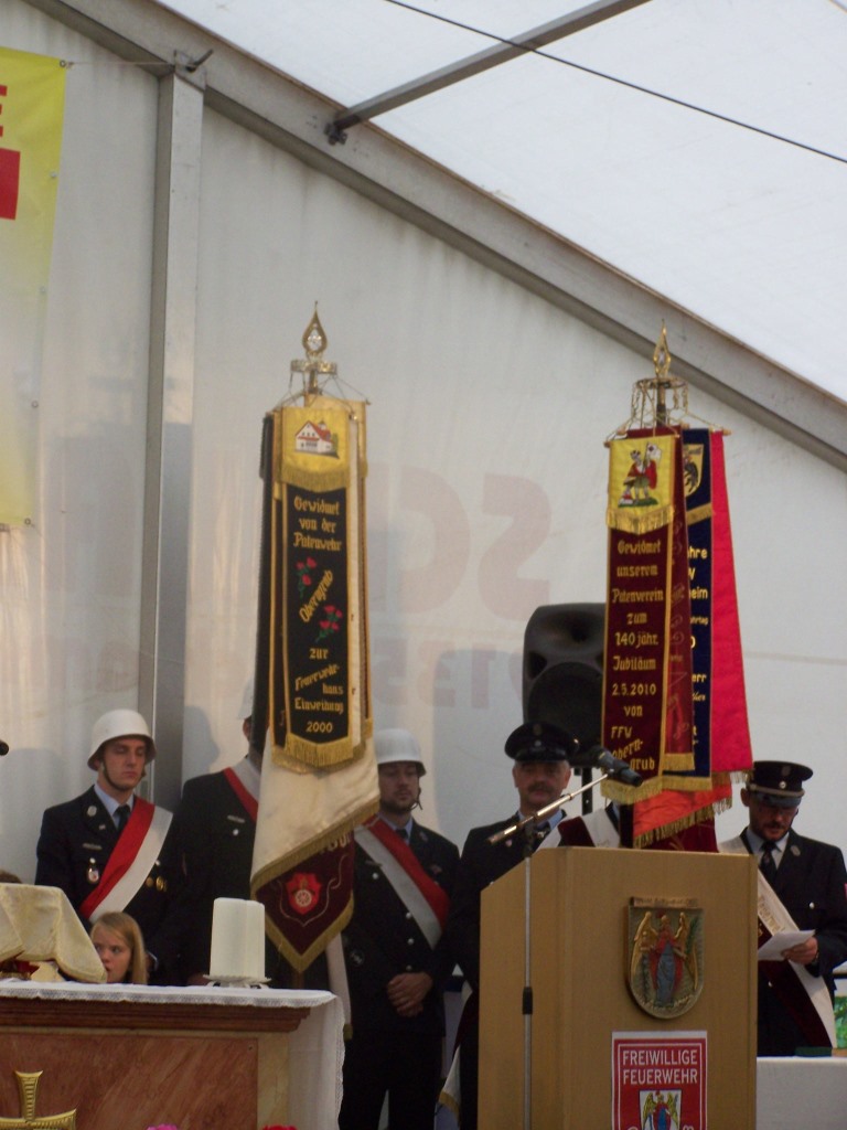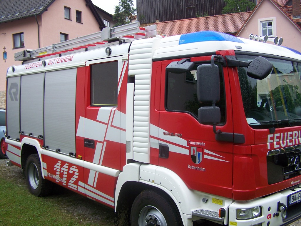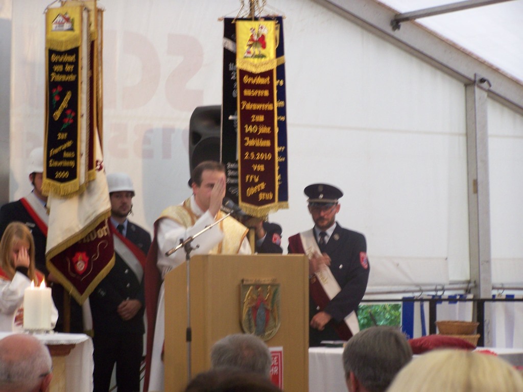 Einige Impressionen: Das alte Gerätehaus: Und nun das neue: An den Wänden waren Bilder mit der "Entstehungsgeschichte" des Hause zu sehen: Im Festzelt, kurz vor demGottesdienst: Beim Festgottesdienst: Die Fahnenabordnungen: Bei der Predigt: Prediger.... ... und Zuhörer Das Fahnenband, gestiftet von den Patenwehren Buttenheim und Mistendorf, wird gesegnet. Die Kommandanten der Patenwehren bringen gemeinsam das Band an der Fahne der FF Oberngrub an. Musikalische Umrahmung des Gottesdienstes. Der Schlusssegen Kurze Hinweise: Das neue Kruzifix wird gesegnet Die Ehrengäste begeben sich zum neuen Gerätehaus - es folgt die kirchliche Segnunhg. Der liturgische Dienst Die Zuschauer Bürgermeister Krämer hängt das Kruzifix auf H.H. Pfarrer Kaiser segnet das Gebäude. Die Kameraden der FF Buttenheim zeigten ihr "Flaggschiff", das HLF 20/16