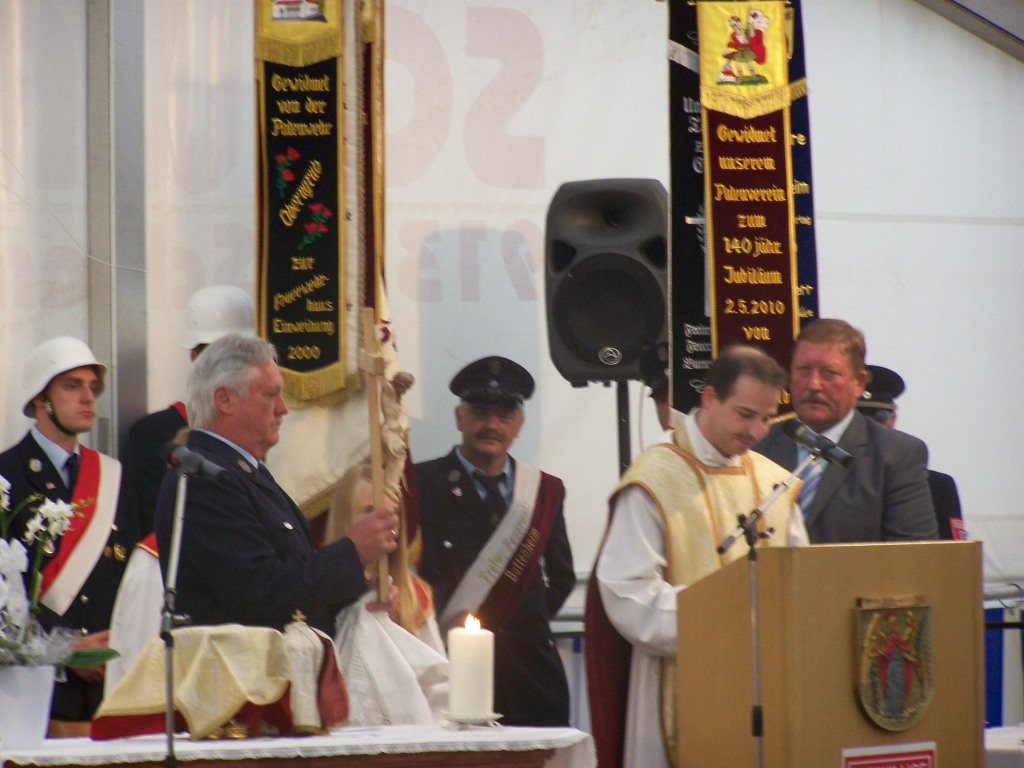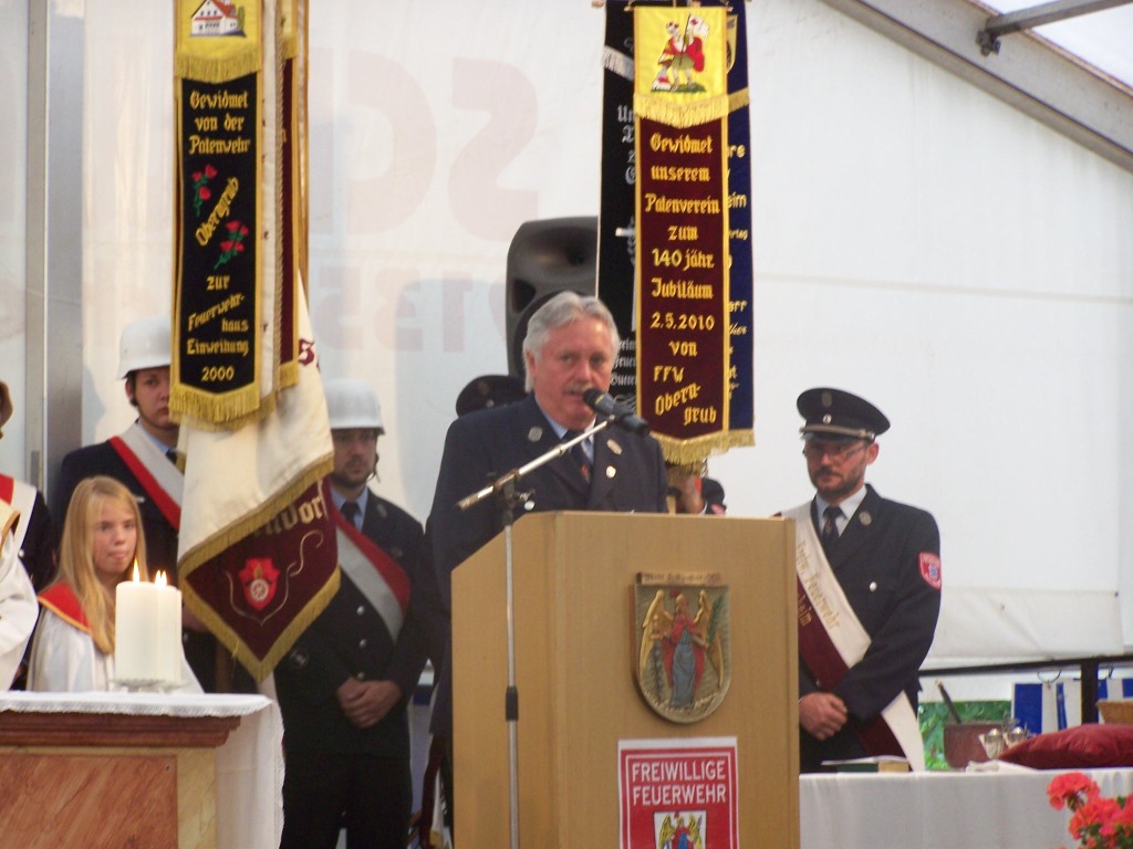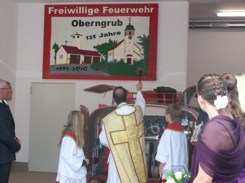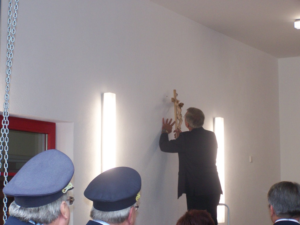 Gerätehausweihe der FF Oberngrub Am 8. September 2013 fand nach einem Festgottesdienst die feierliche Weihe des neuen Gerätehauses in Oberngrub statt. In seiner Predigt würdigte H.H. Pfarrer Kaiser die Gemeinschaftsarbeit der Kameradinnen und Kameraden, die in den letzten 4 Jahren mehr als 4000 Stunden für ihr Gerätehaus investiert hatten. Er wies darauf hin, dass nicht jeder Bau unter so einem guten Stern (siehe Flughafen Berlin-Brandenburg) stehe wie die Errichtung des inzwischen dritten Gerätehauses der FF Oberngrub. Die Zahl "3" hat ja in christlichen Glauben eine besondere Stellung - wir haben einen dreieinen Gott. Auch gibt es ja des Sprichwort: "Aller guten Dinge sind drei". Im übrigen ist ´der hohe Dom zu Bamberg ebenfalls der dritte Dom, der in Bamberg gebaut wurde - und dieser steht schon über 1000 Jahre! Bürgermeister Krämer stiftete für das Gerätehaus ein Kruzifix, das ebenfalls gesegnet und dann von ihm persönlich an seinem Platz angebracht wurde.