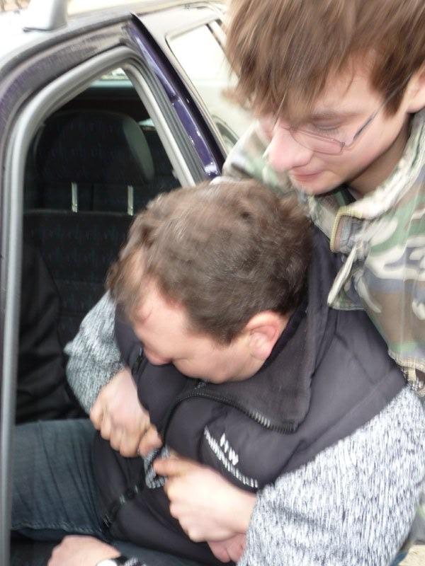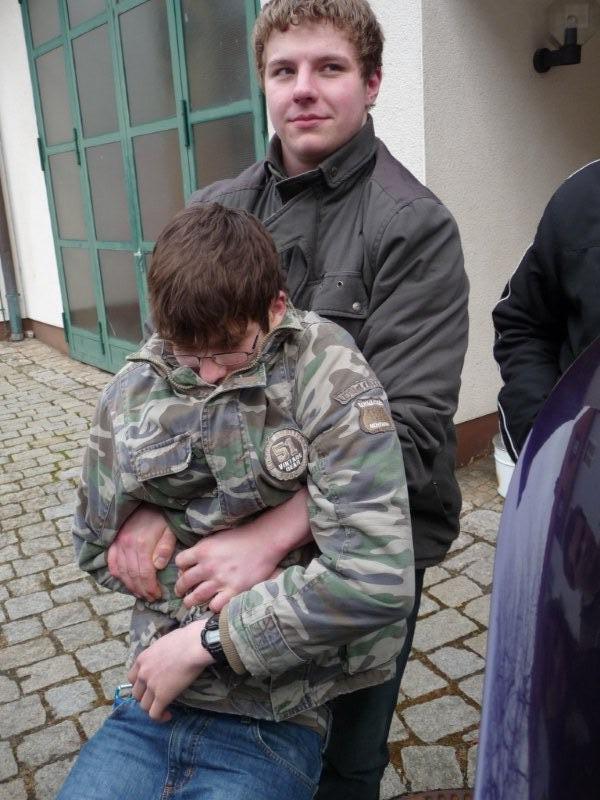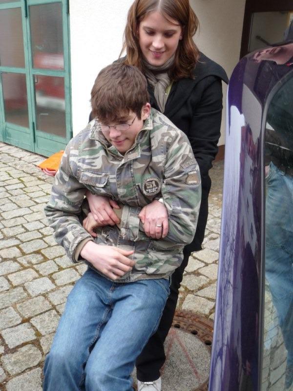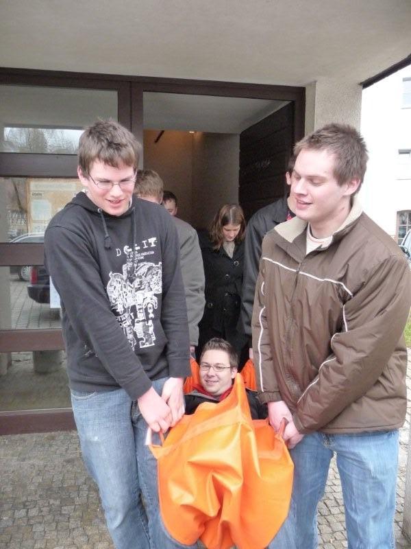 Der Verletze wird in einem Tragetuch abtransportiert, ...