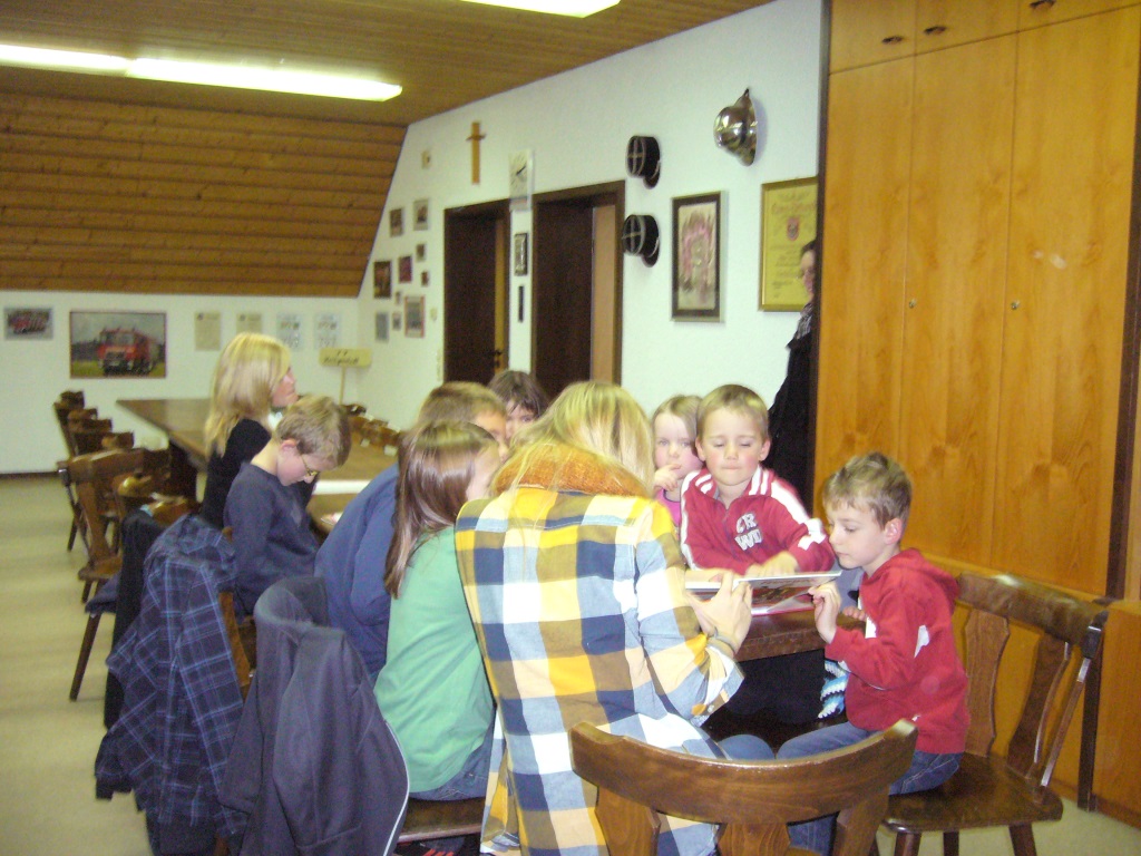 Beim zweiten Treffen der Kinderfeuerwehr am 4.10.2013 erfuhren die Lösch-Schnecken mehr über die Positionen und Aufgaben der Feuerwehr. Was sind die Aufgaben des Kommandanten, des Jugendwarts, des Gerätewarts, usw. ? Sie lernten auch, dass es verschiedene Arten der Feuerwehr gibt. Da gibt es einmal die Berufsfeuerwehr, die Werksfeuerwehr (bei großen Unternehmen), und die freiwillige Feuerwehr (wie es zum Beispiel die Feuerwehr Heiligenstadt ist). Aber vor allem lernten die Kinder, wie ein Einsatz abläuft und wie sie sich selbst in einer Gefahren- oder Unfall-Situation verhalten. Das die 112 eine ganz wichtige Telefonnummer ist, war am Ende jedem bewusst.