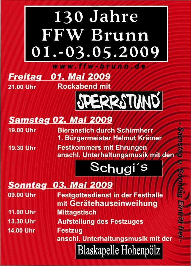 | 01.05.2009 | bis | FF Haus Einweihung (Programm) | FF Brunn | Feuerwehrhaus Brunn |